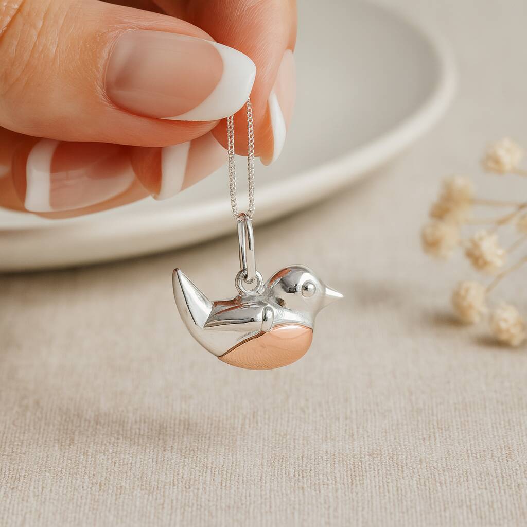 Personalised Sterling Silver And Rose Gold Robin Pendant Necklace