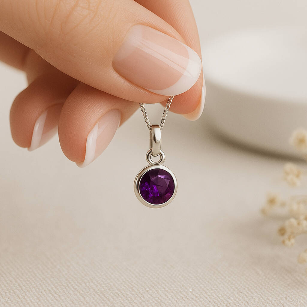 Personalised Sterling Silver Amethyst Pendant Necklace: February Birthstone