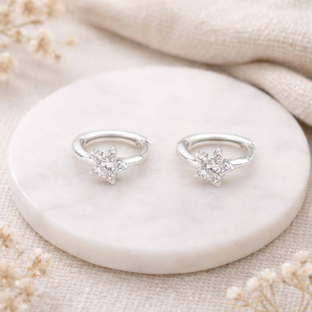 Sterling Silver Huggie Hoop Star Earrings – 10mm