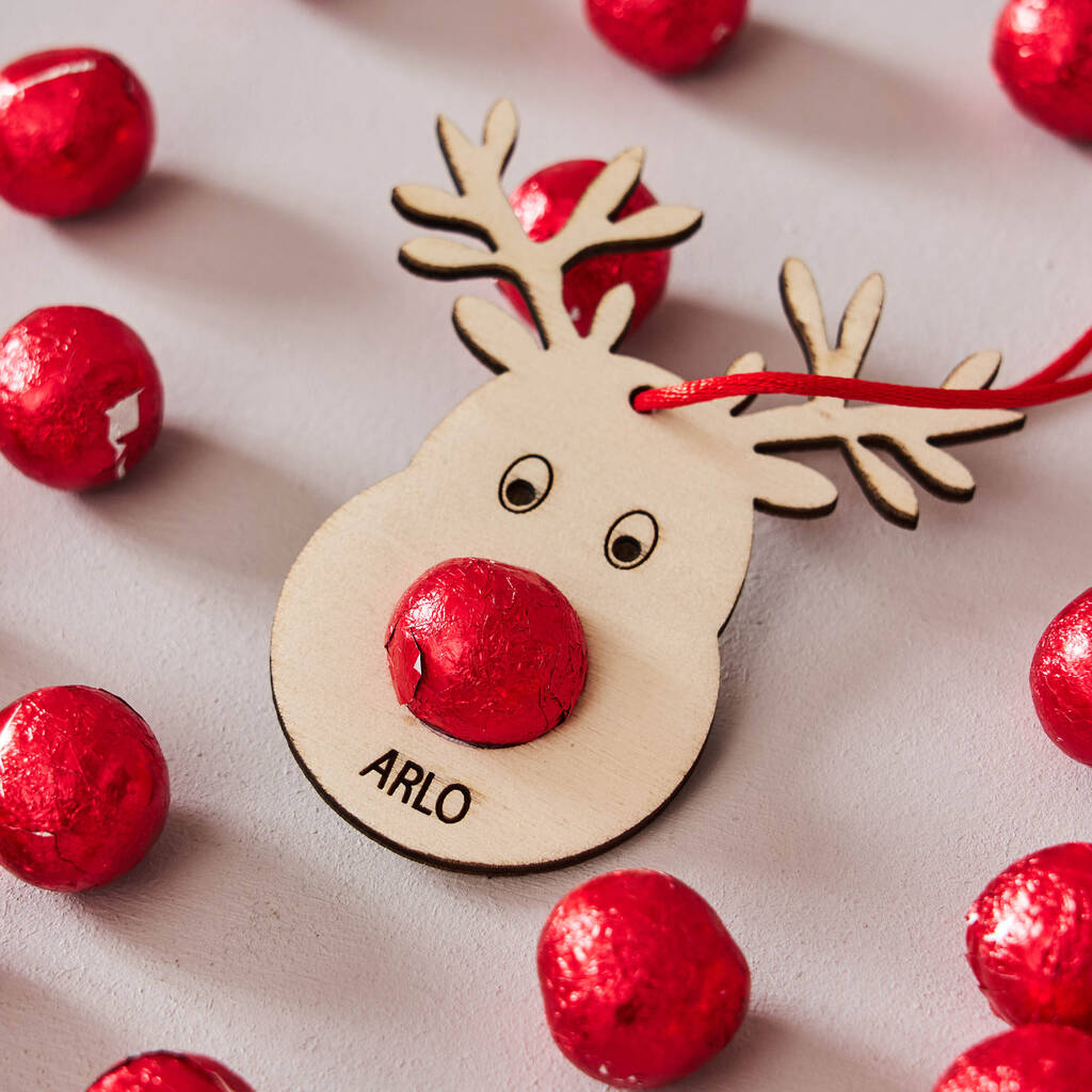 Personalised Reindeer Christmas Tag And Bag Of Chocolate Noses, 1 of 4