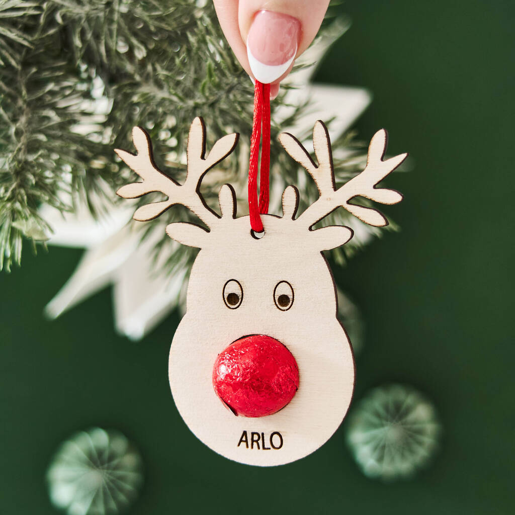 • Personalised Reindeer Christmas Tag And Bag Of Chocolate Noses, thumbnail 1 of 4