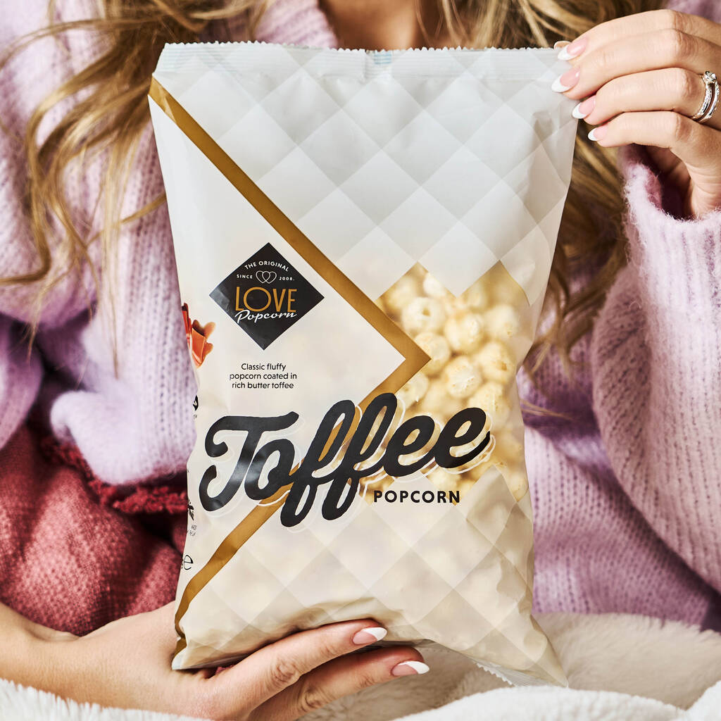 Toffee Sharing Bag Ingredients: Popping Corn (21%), Sugar, Glucose Syrup,Vegetable Oil, Salt, Butter, (from Milk), Emulsifier: Soya Lecithin.