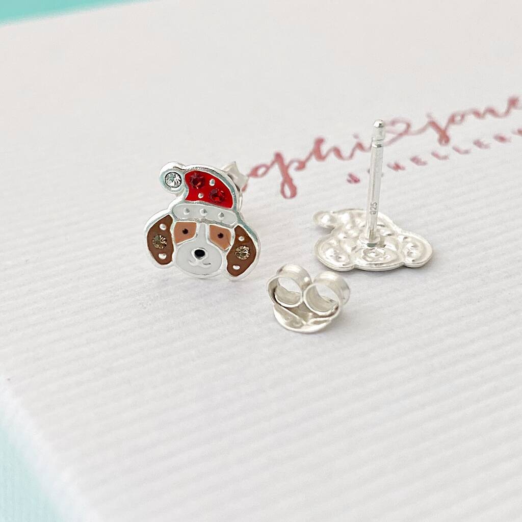 Personalised Sterling Silver Dog Santa Christmas Earrings