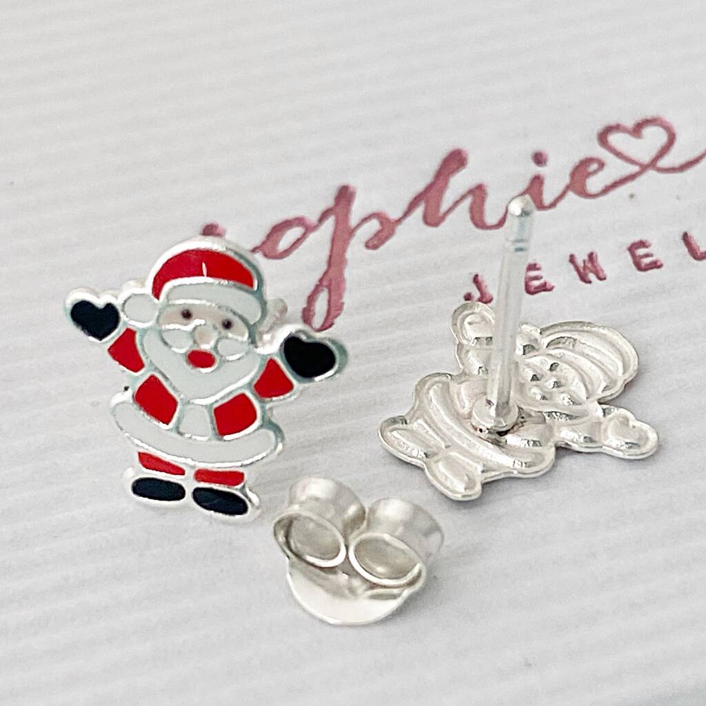 • Sterling Silver Jolly Santa Christmas Earrings, thumbnail 3 of 3