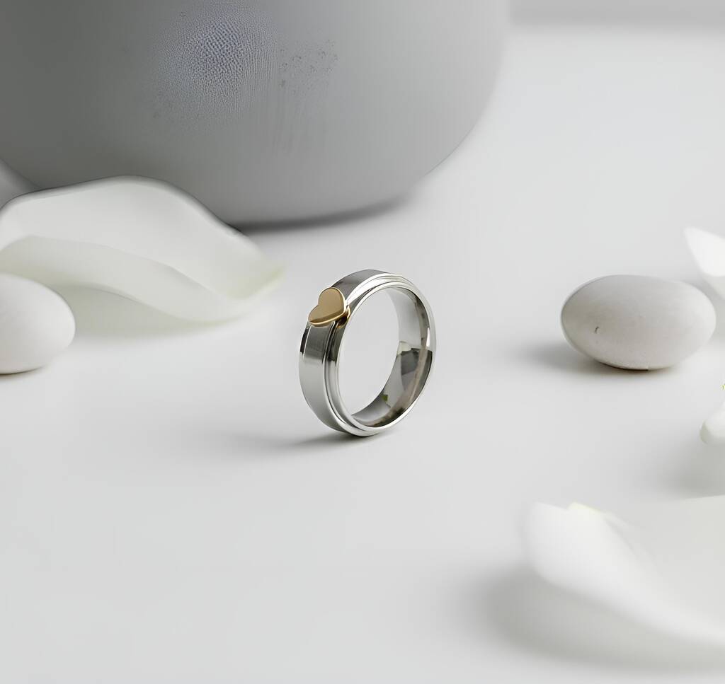 Hammered Sterling Silver Spinner Ring With Golden Heart