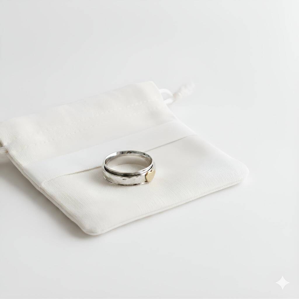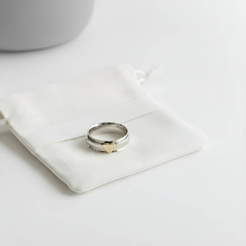 Hammered Sterling Silver Spinner Ring With Golden Heart, 1 of 5