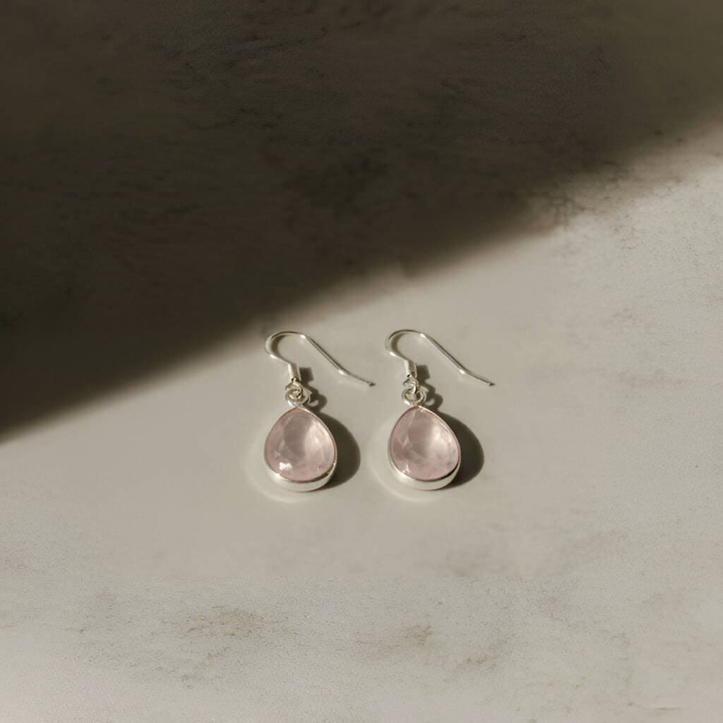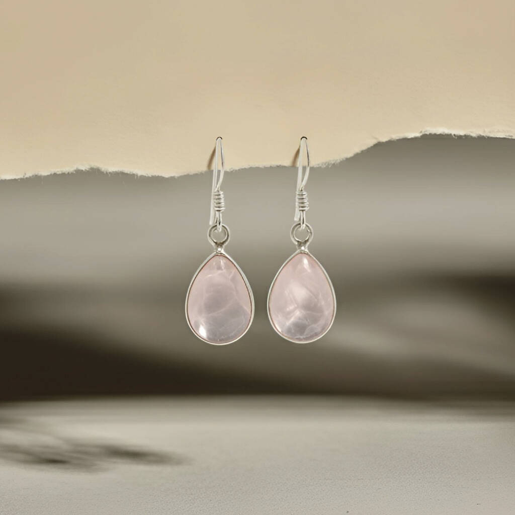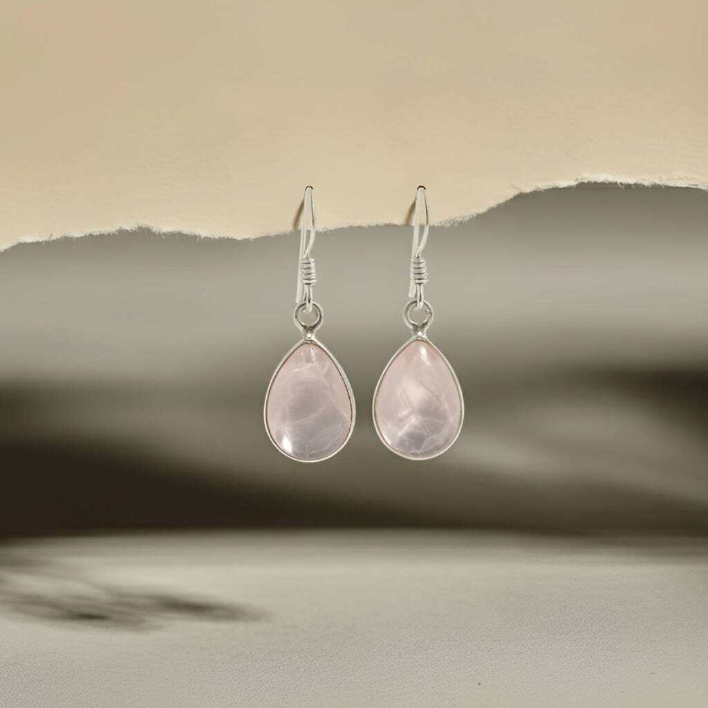 Handmade Teardrop Rose Quartz Sterling Silver Drop Earrings