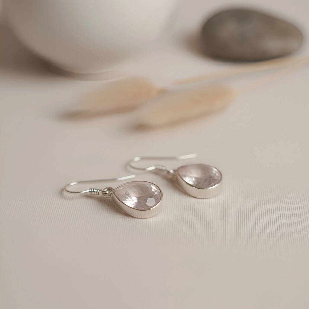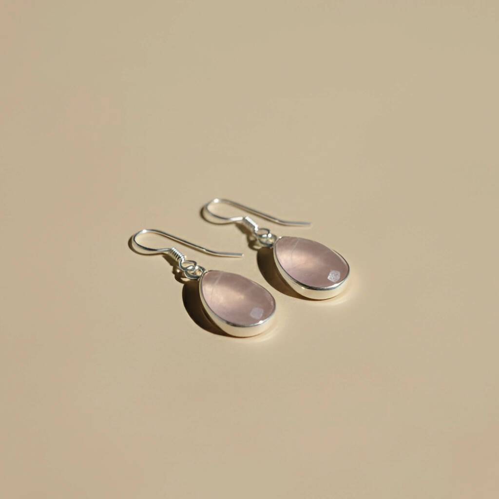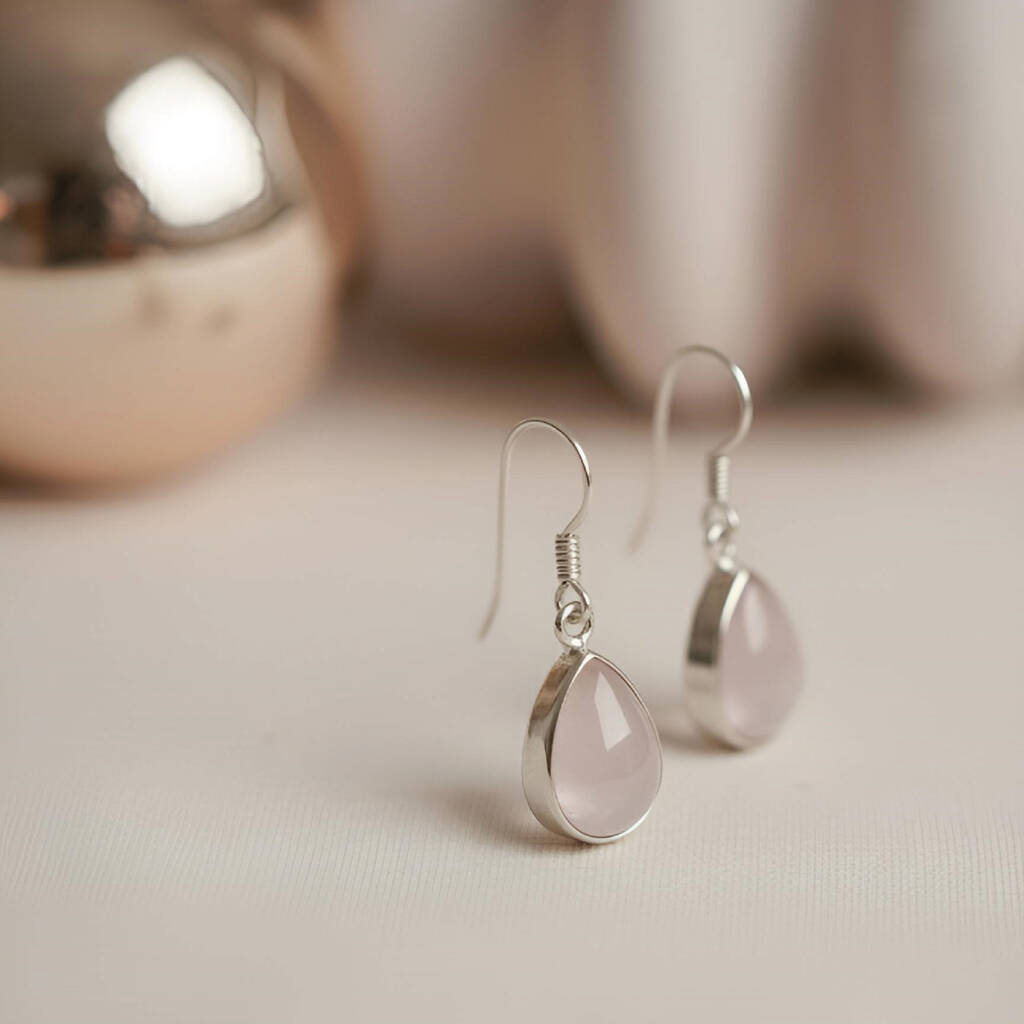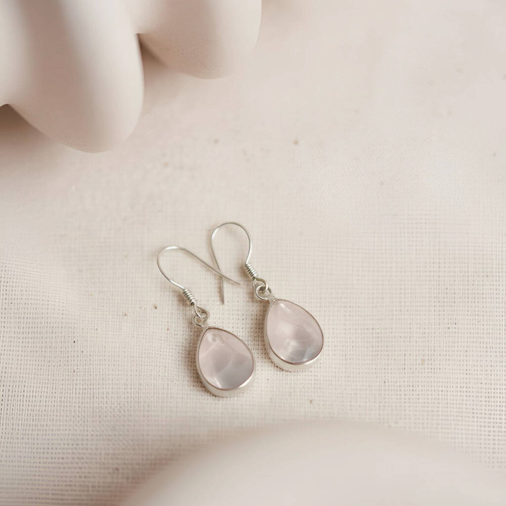Handmade Teardrop Rose Quartz Sterling Silver Drop Earrings