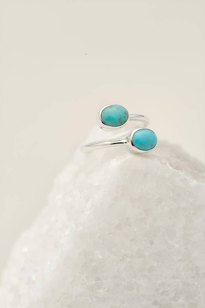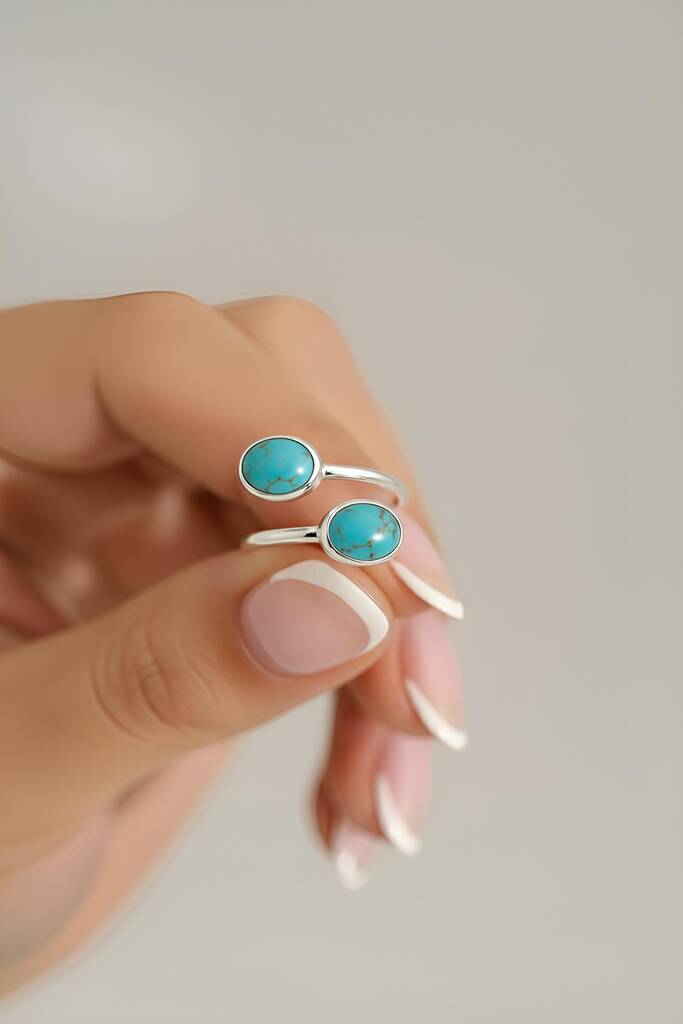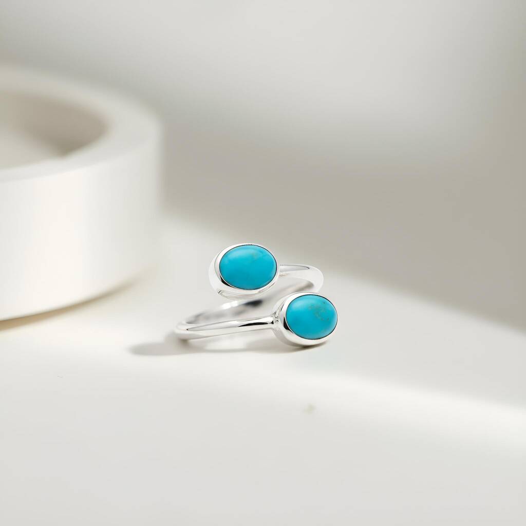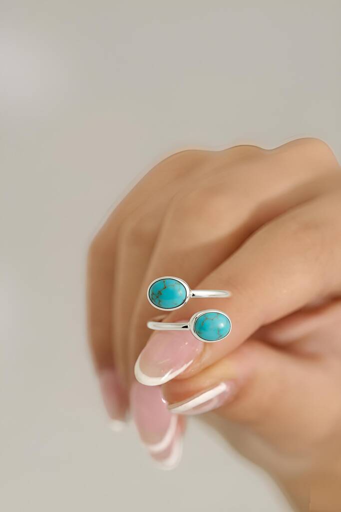 Open Adjustable Sterling Silver Turquoise Ring – Double Oval Gemstones