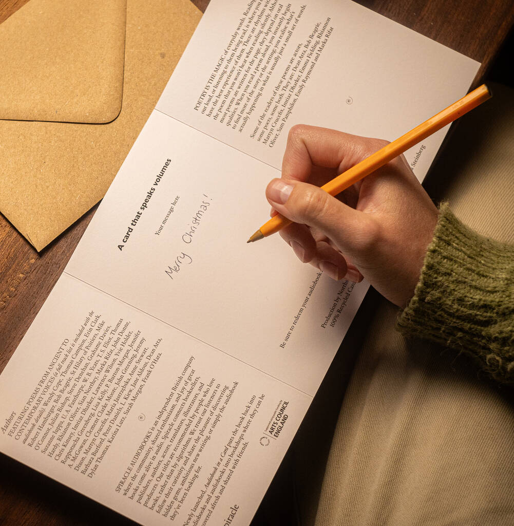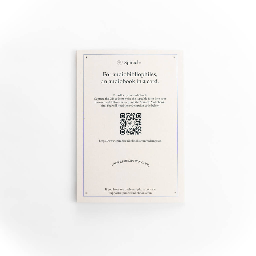 Each card includes space for your personal message and comes with a plain kraft envelope – ready to post or hand-deliver. Or let us print your note and send it direct to the recipient for effortless gifting. Inside, a QR code unlocks the complete audiobook via our simple app or website – instant listening with no hidden costs.