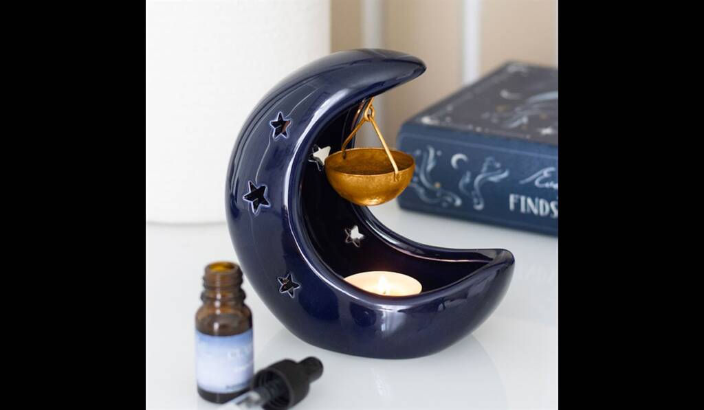 Crescent Moon Hanging Oil Burner With Gold Dish, 1 of 4