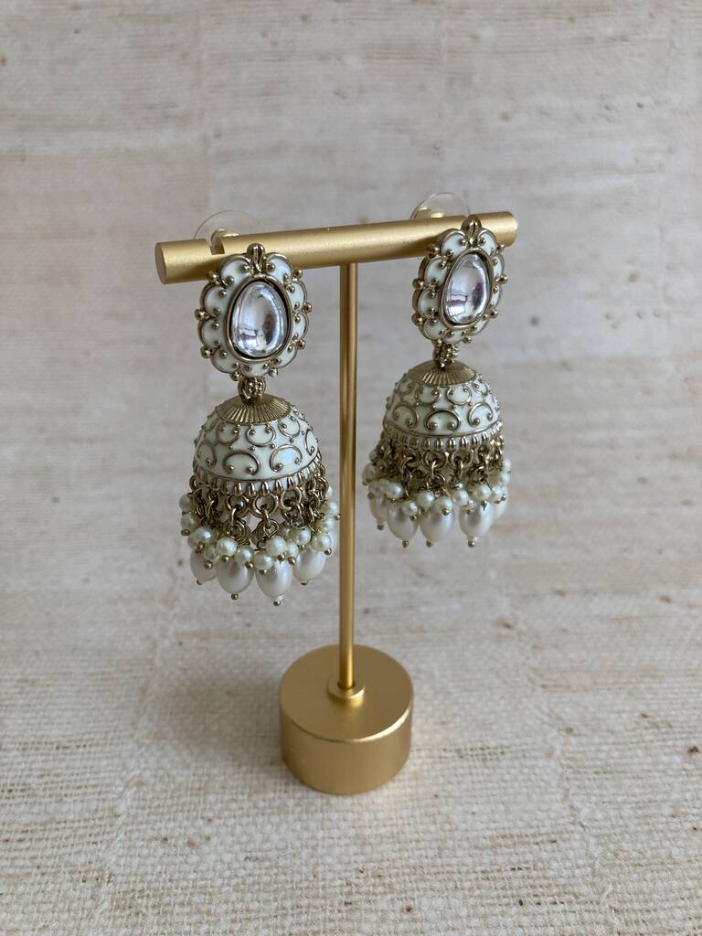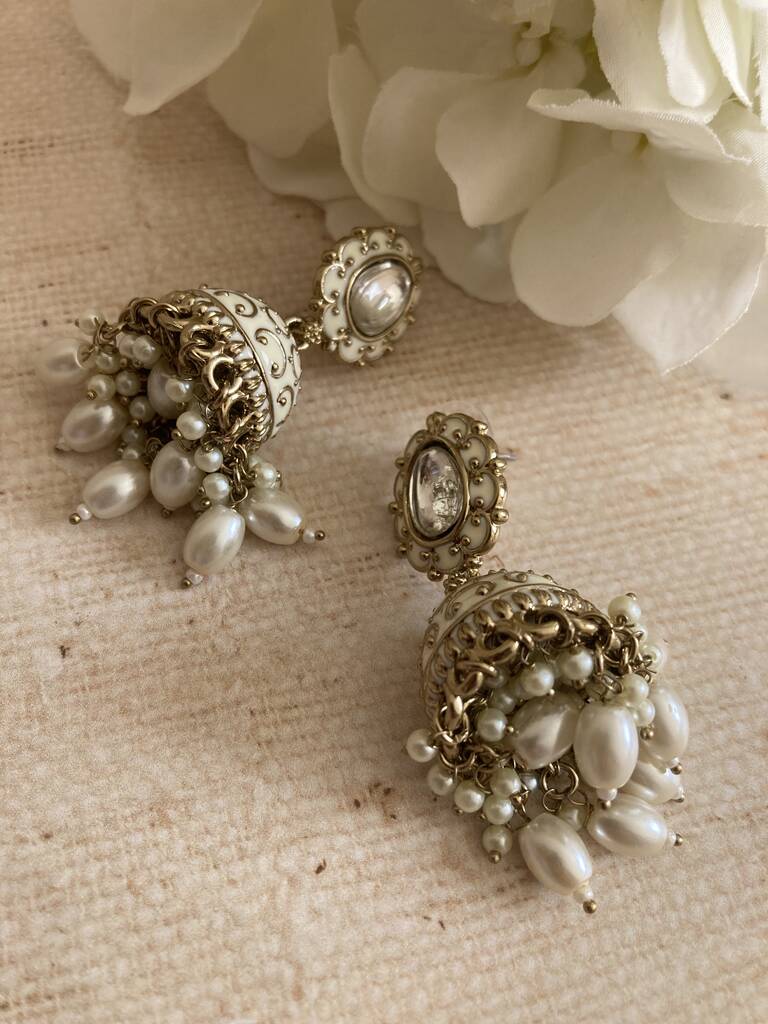 Antique Gold Pearl Jhumki Indian Earrings