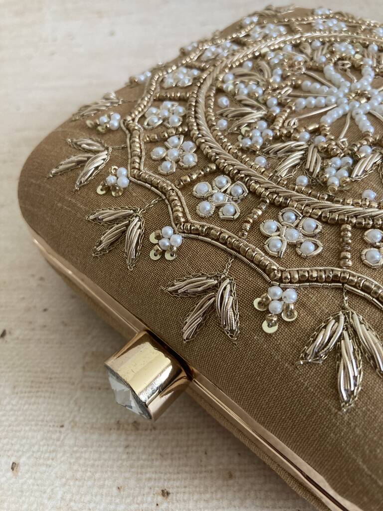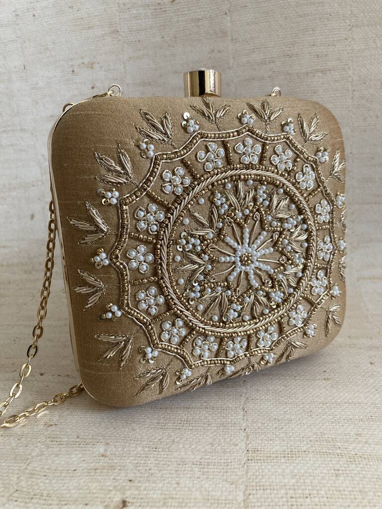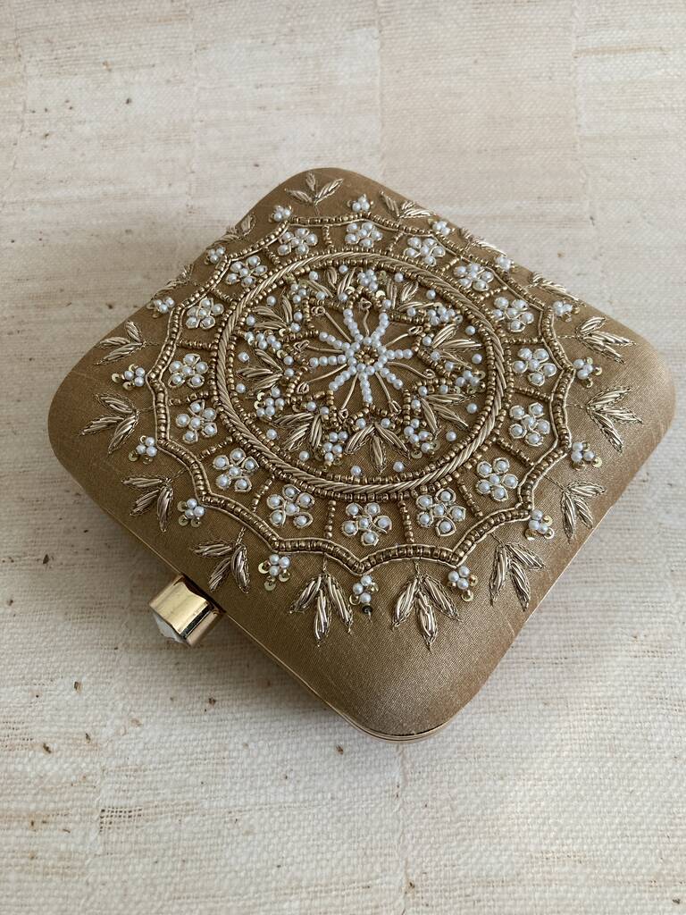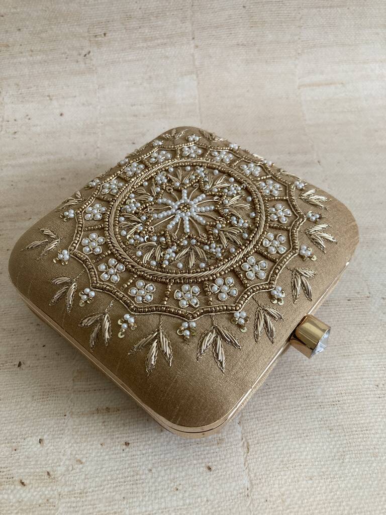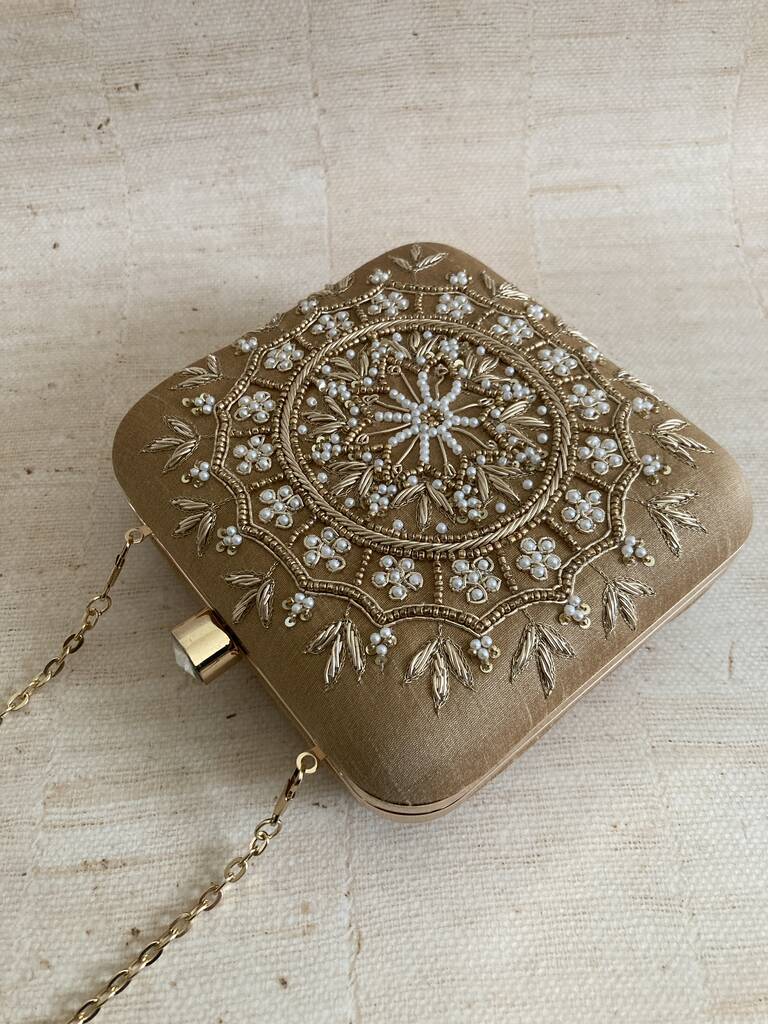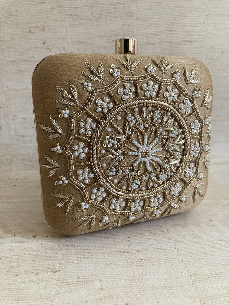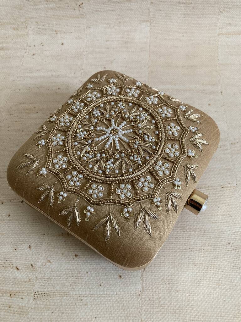 Gold Raw Silk Mandala Design Square Clutch Bag
