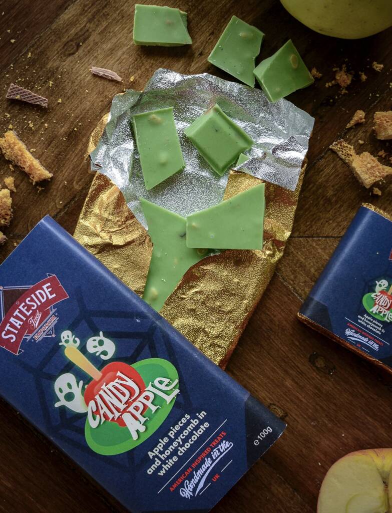 White Chocolate (87%) (Sugar, Cocoa Butter (28%), Whole Milk Powder, Emulsifier: Soya Lecithin, Natural Flavour), Fudge (6%) (Sugar, Full Cream Condensed Milk, Fondant (Sugar, Glucose (From Wheat), Water), Glucose Syrup, Palm Oil, Water, Emulsifier: Soya Lecithin), Apple Fruit Pieces (5%) (Concentrated Fruit Juice, Fructose Glucose Syrup, Sugar, Glucose Syrup, Wheat Fibre, Palm Fat, Rice Starch, Acidity Regulator: Citric Acid, Gelling Agent: Pectin, Natural Flavour), Honeycomb (2%) (Sugar, Glucose Syrup, Vegetable Fat (Palm Kernel Oil, Palm oil, Sodium Bicarbonate, Rice Flour), Natural Flavours, Colours: e102. e132, e133.