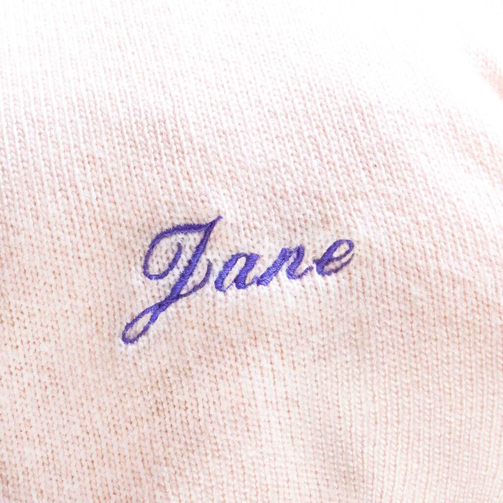 The long cashmere blanket scarf is embroidered with your chosen name or initials in a modern script font, adding a contemporary personalised touch. The soft scarf pairs perfectly with a cashmere beanie, topped with a fluffy pom-pom, and snug wool gloves.