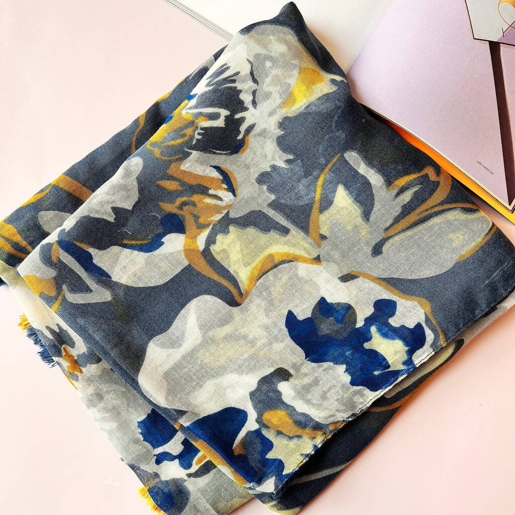 Blue Abstract Floral Printed Scarf — Personalised Gift Card And Gift Box Option