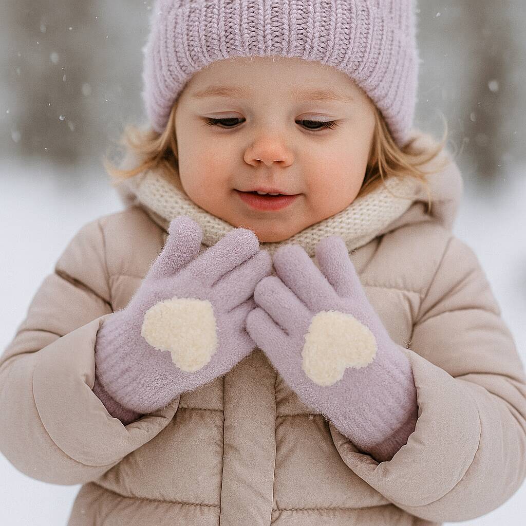 Cosy Children’s Gloves With Fluffy Heart