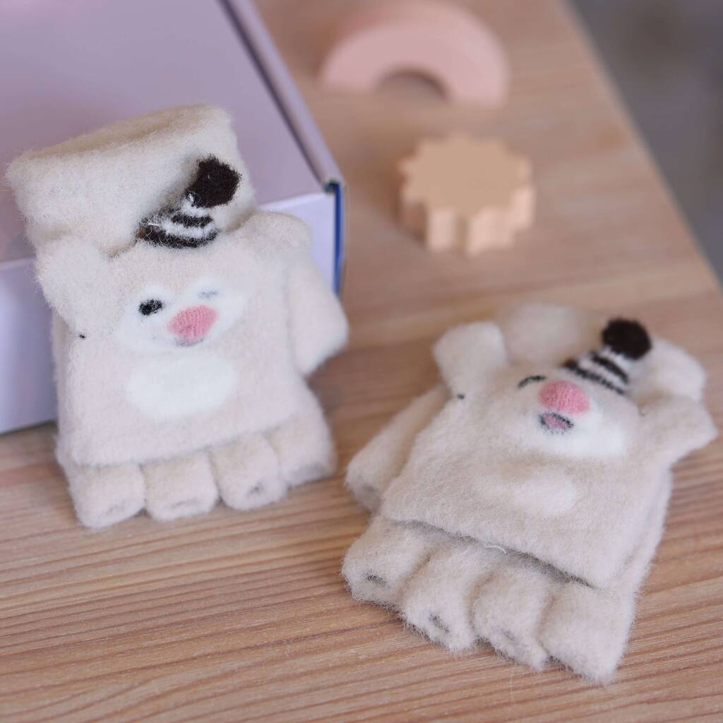 Cute Kids’ Convertible Gloves With Bear Mitten Caps – Soft Fleece Winter Gloves