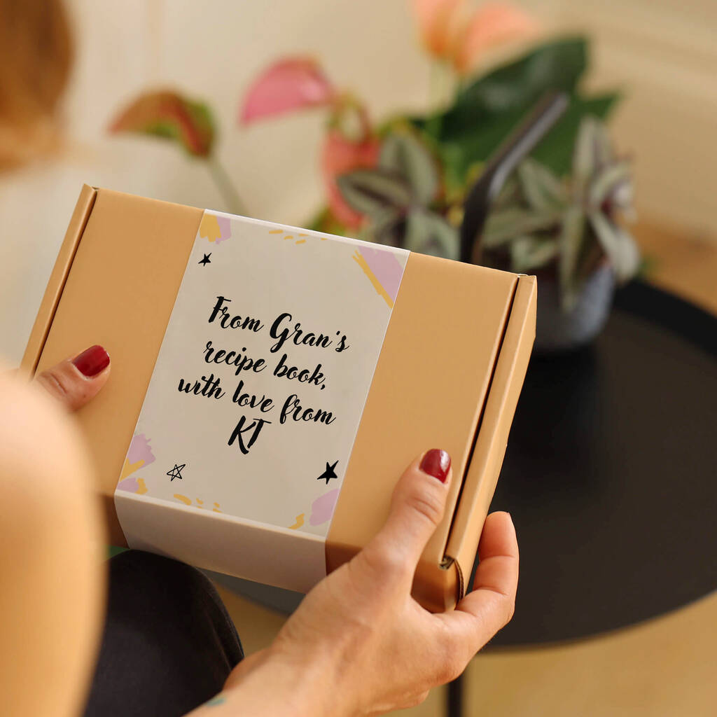 Each tea towel can come with a paper sleeve wrap around it, that you can also personalise with a little message to your recipient. If you're ordering for the family, why not use the same recipe but change each paper sleeve to suit each family member?