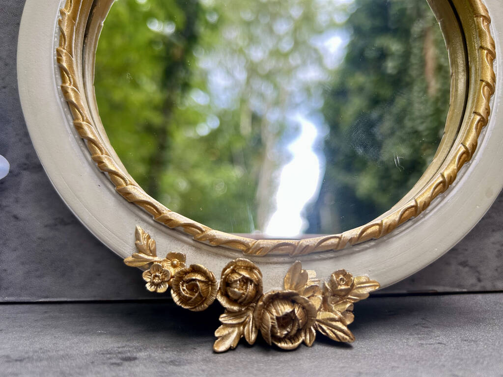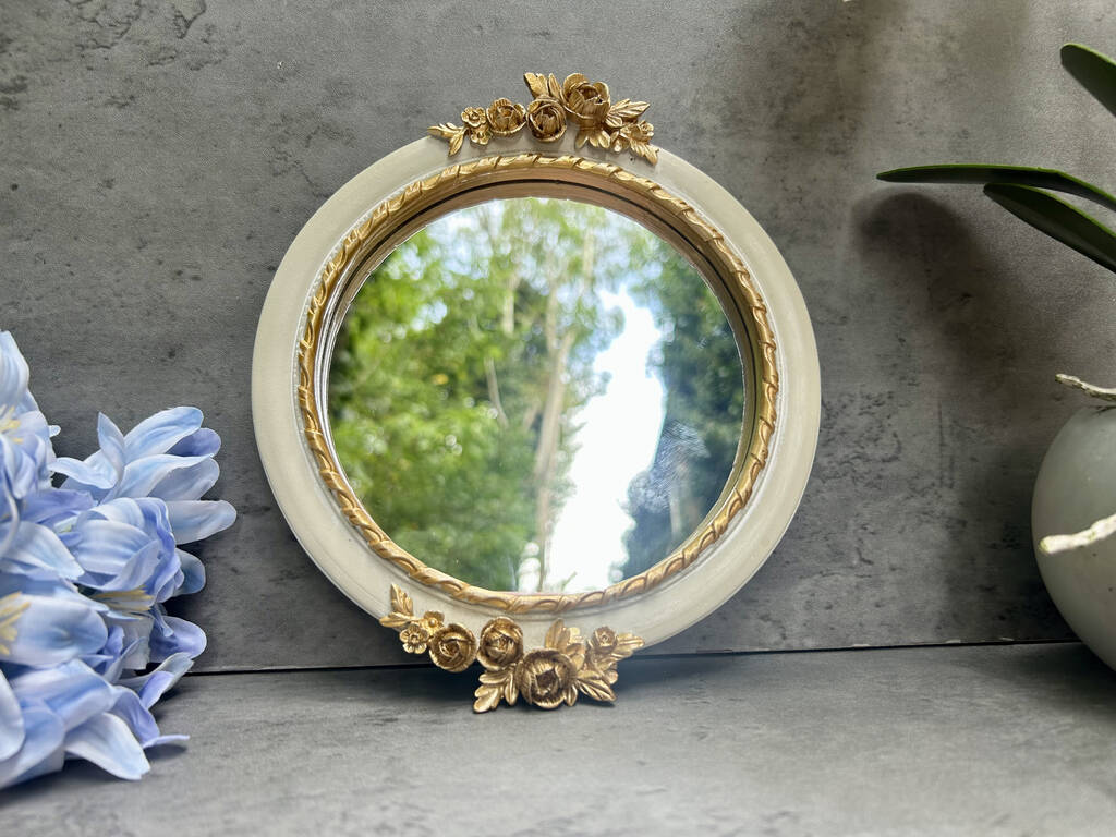 20cm Cream And Gold Decorative Wall Mirror – Floral Motif