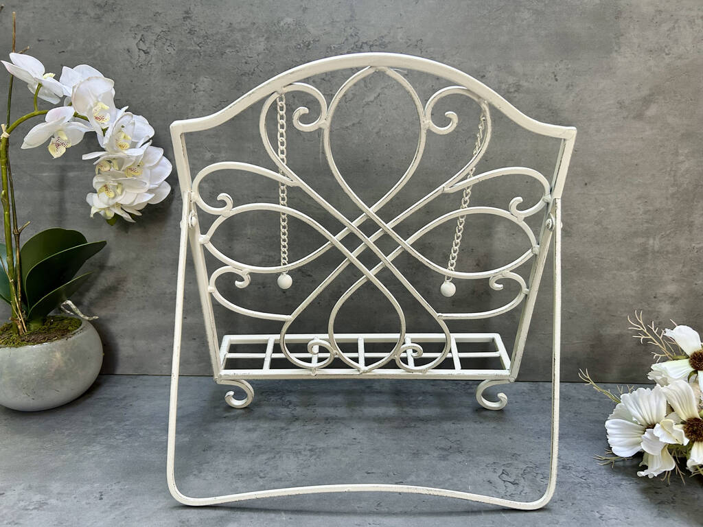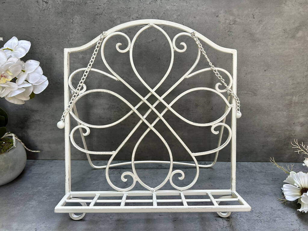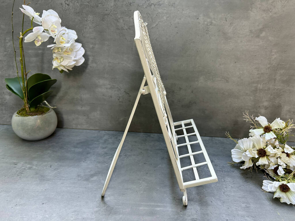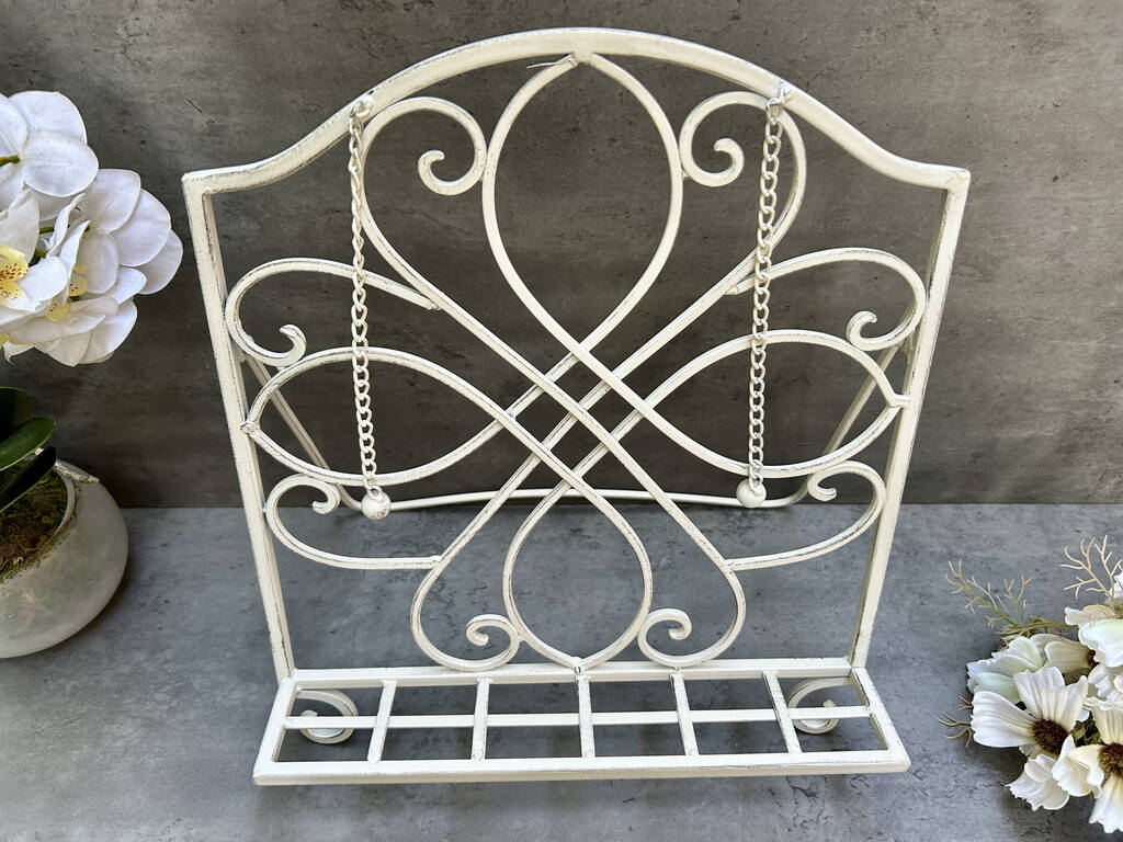 34cm White Distressed Metal Cookbook And Recipe Stand