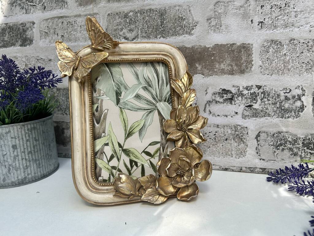 Cream And Gold Butterfly Photo Frame – 6x4 Inch Portrait