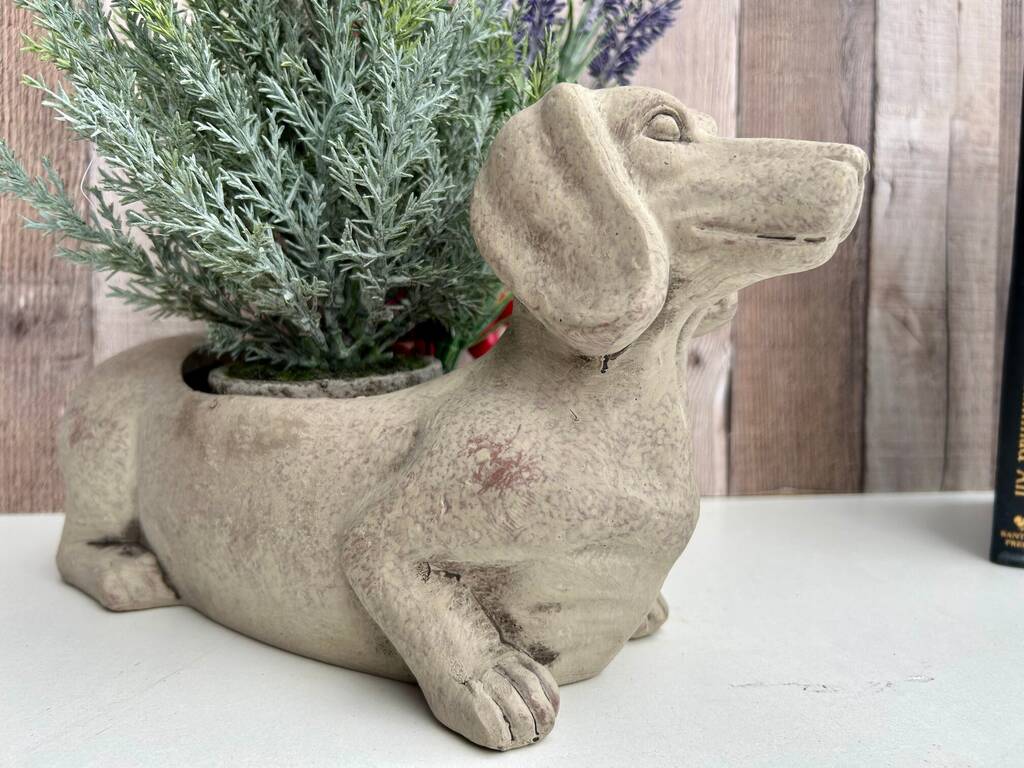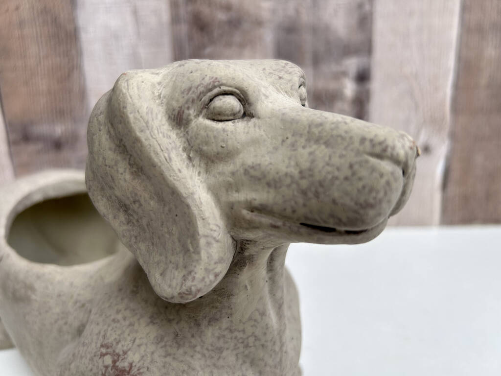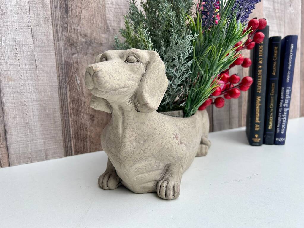 Grey Dachshund Planter Sausage Dog Flower Pot Home Decor