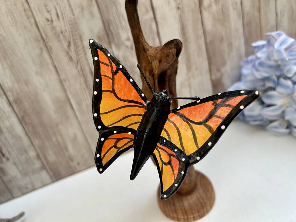 Each butterfly has been handpainted to replicate the pattern of a Monarch butterfly.
