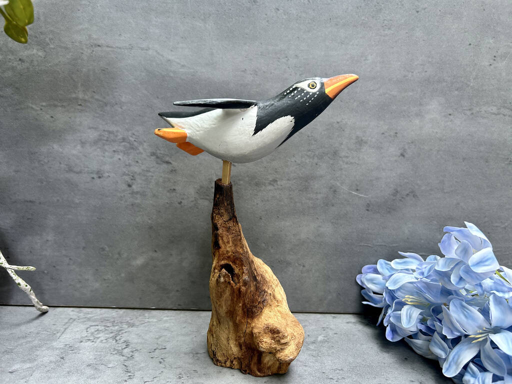 Handmade Wooden Cliff Diving Penguin Sculpture Ornament