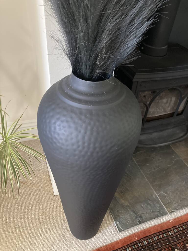 Large Black Metal Floor Vase 80cm Ornament Home Decor