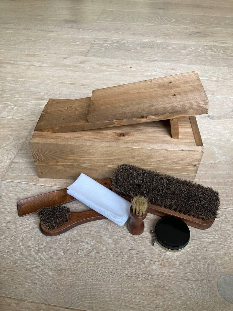 Luxury Wooden Shoe Shine Box Set – Boot Cleaning Kit