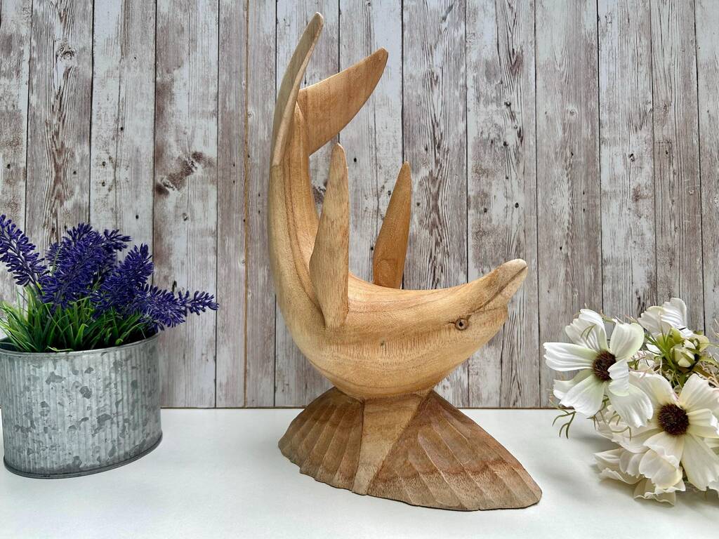 • Wooden Dolphin Wine Bottle Holder Hand Carved Dolphin, thumbnail 1 of 7