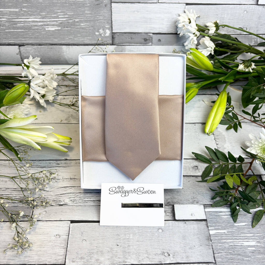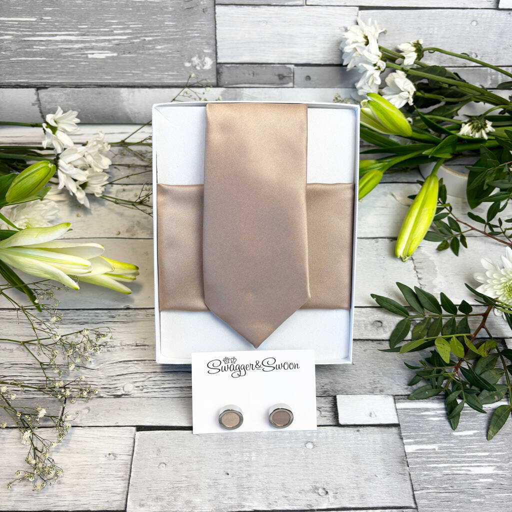 • Coffee Wedding Tie Set, thumbnail 1 of 10