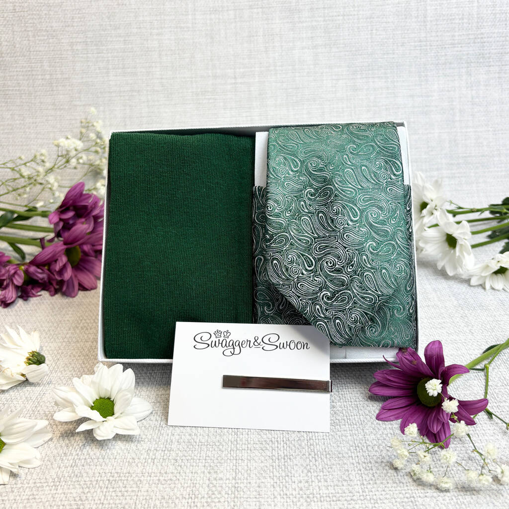 Dark Green Paisley Wedding Tie Set, 1 of 4
