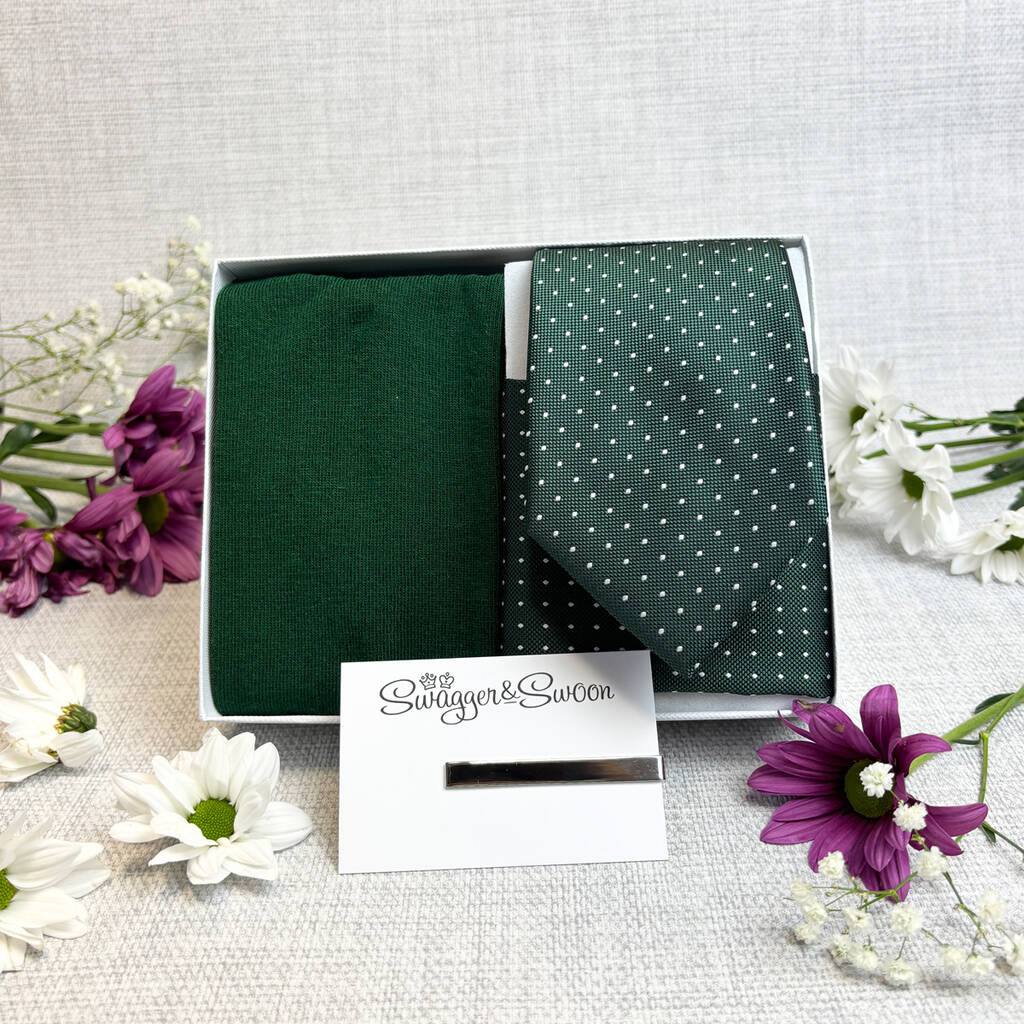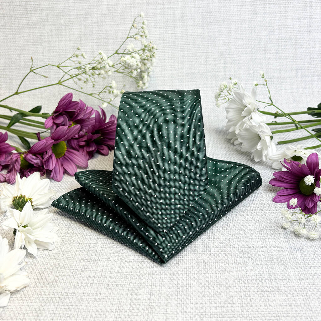 Dark Green Pin Dots Wedding Tie Set, 1 of 4