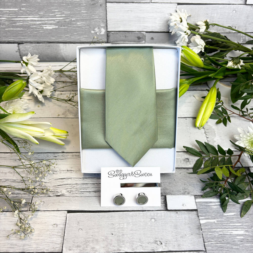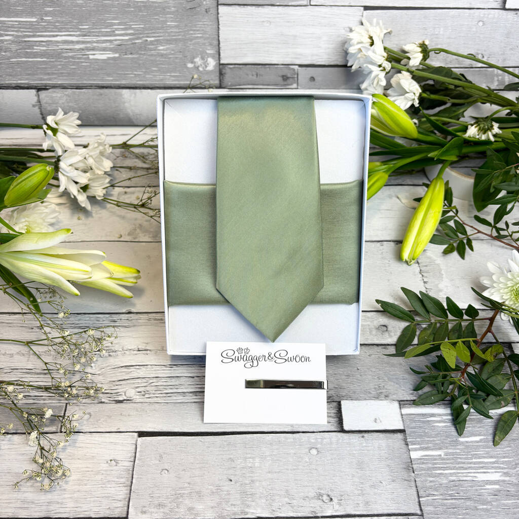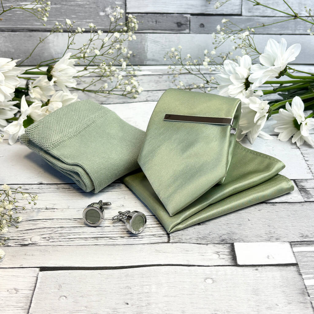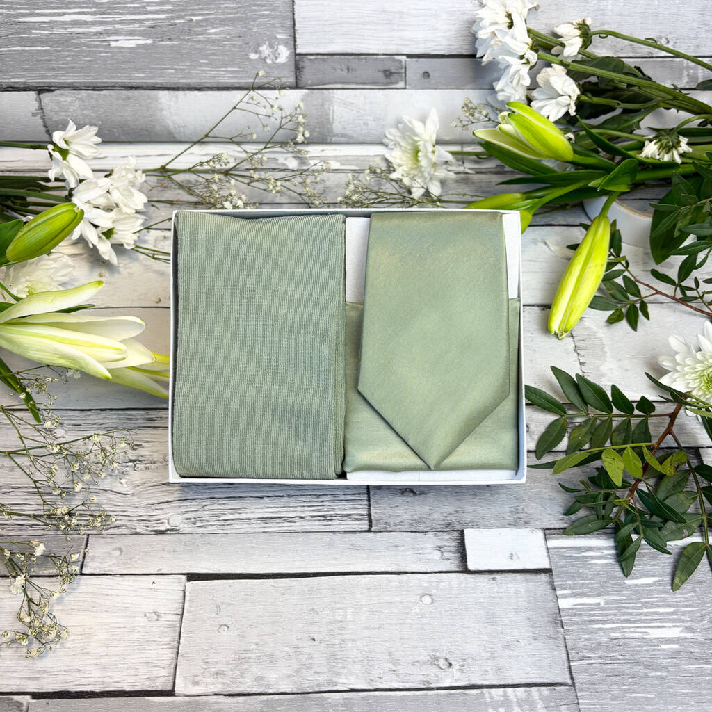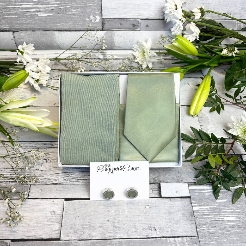 • Dusty Sage Wedding Tie Set, thumbnail 1 of 10