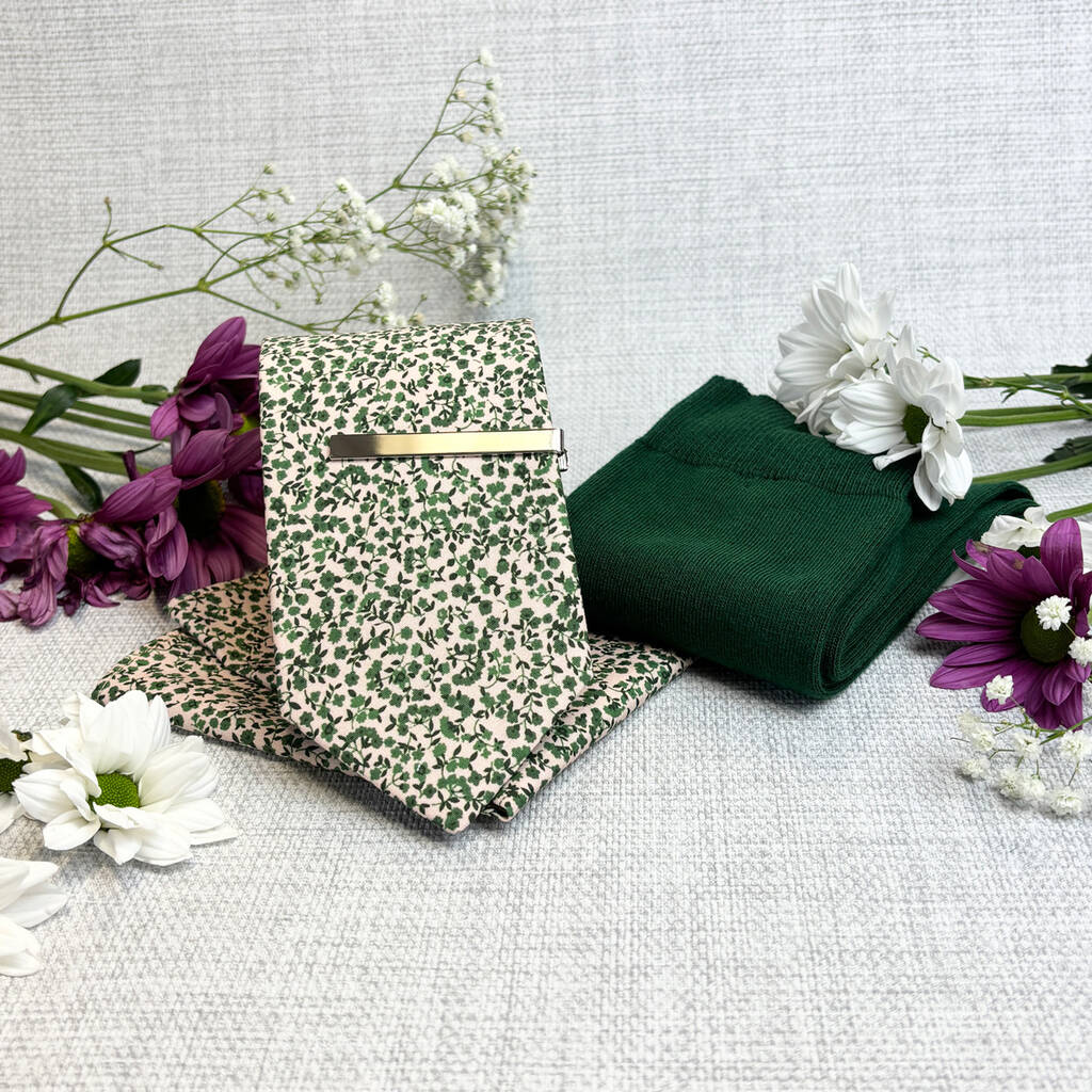Coordinated wedding accessory set, hand-assembled in the UK. Includes a perfectly matched tie and pocket square, with cufflinks and socks for a stylish wedding look.Create a polished, perfectly coordinated look for your wedding day with this premium accessory set. Each piece is colour-matched for a seamless finish, making it ideal for grooms, groomsmen and ushers. Hand-assembled and finished in the UK, it offers the ease of a ready-made set with the craftsmanship of a personalised touch. With classic styling and a modern colour palette, it’s designed to complement your suits, bridesmaids’ dresses and overall theme beautifully. A thoughtful gift and an effortless way to elevate your wedding style.