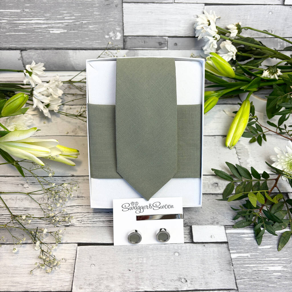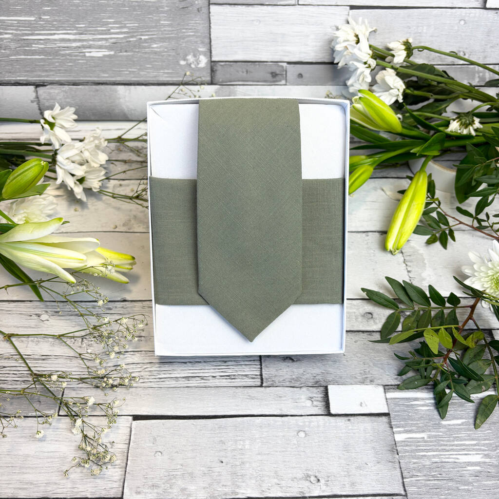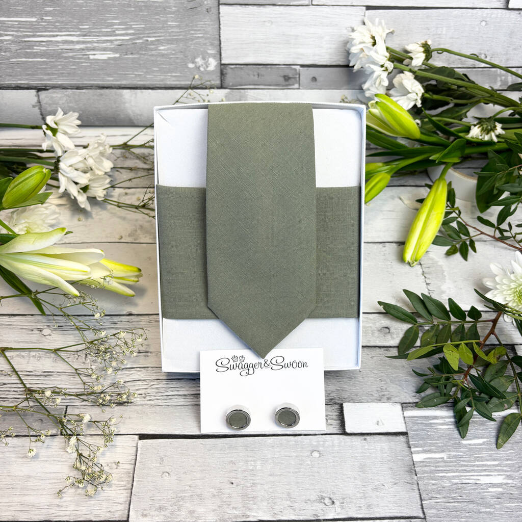 Khaki Cotton Wedding Tie Set, 1 of 10