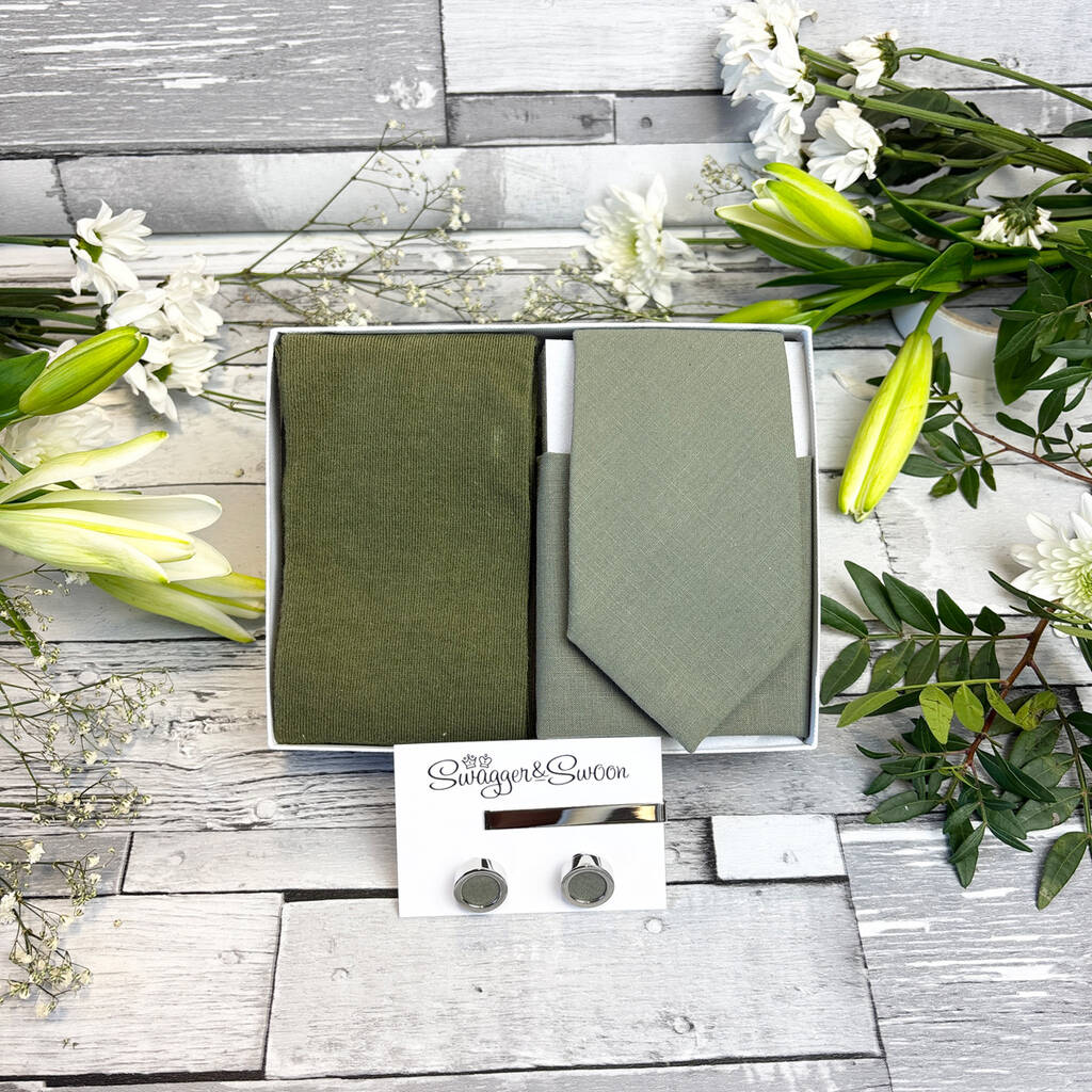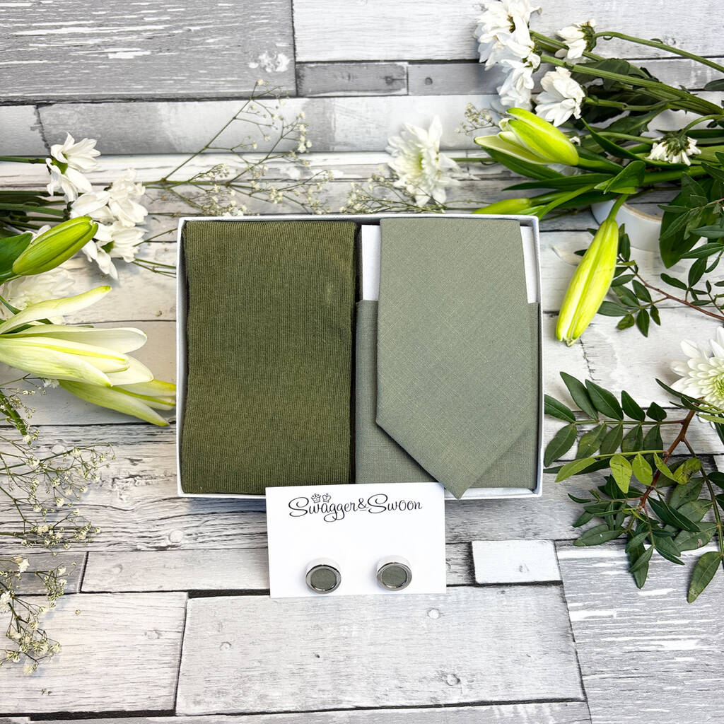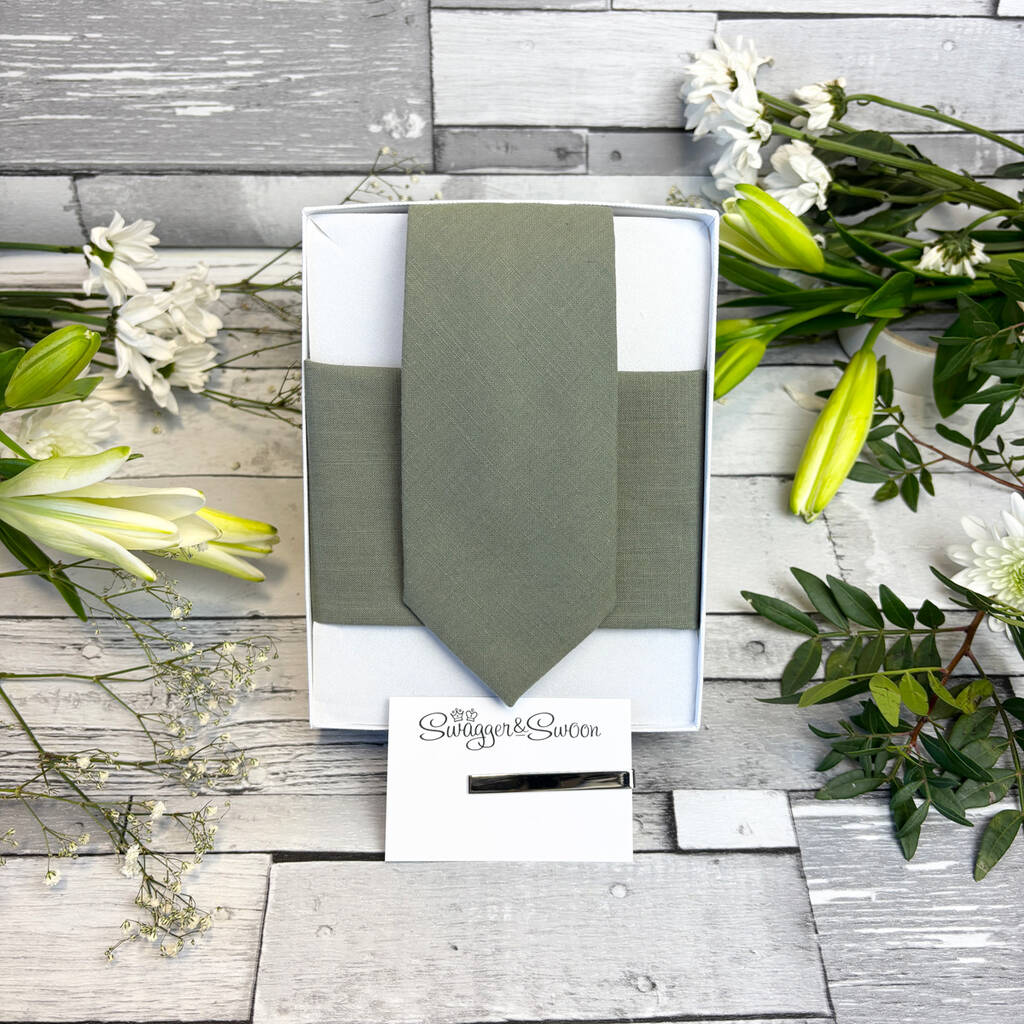 Khaki Cotton Wedding Tie Set, 1 of 10