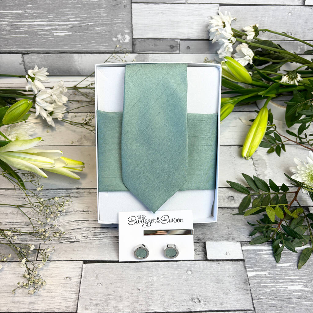 Seagrass Shantung Wedding Tie Set, 1 of 10