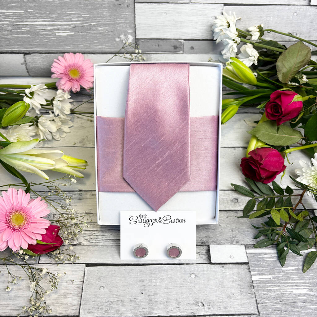 Sweet Pink Shantung Wedding Tie Set, 1 of 10