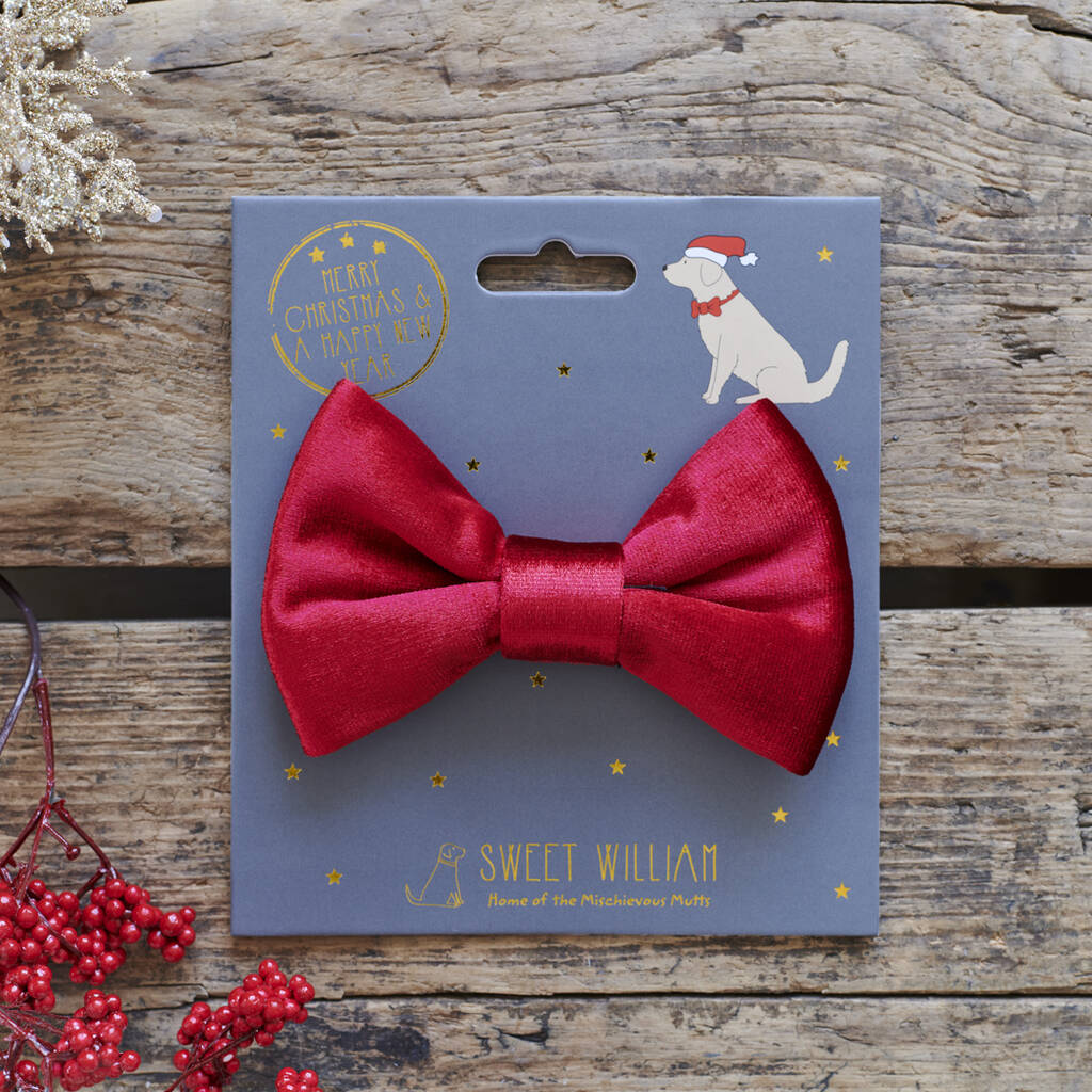 To add a festive flourish, select one of our velvet bow ties in Gold, Red or Green. They slide easily onto your dog’s collar for an instant Christmas glow-up, perfect for Christmas Day photos and holiday walks.
