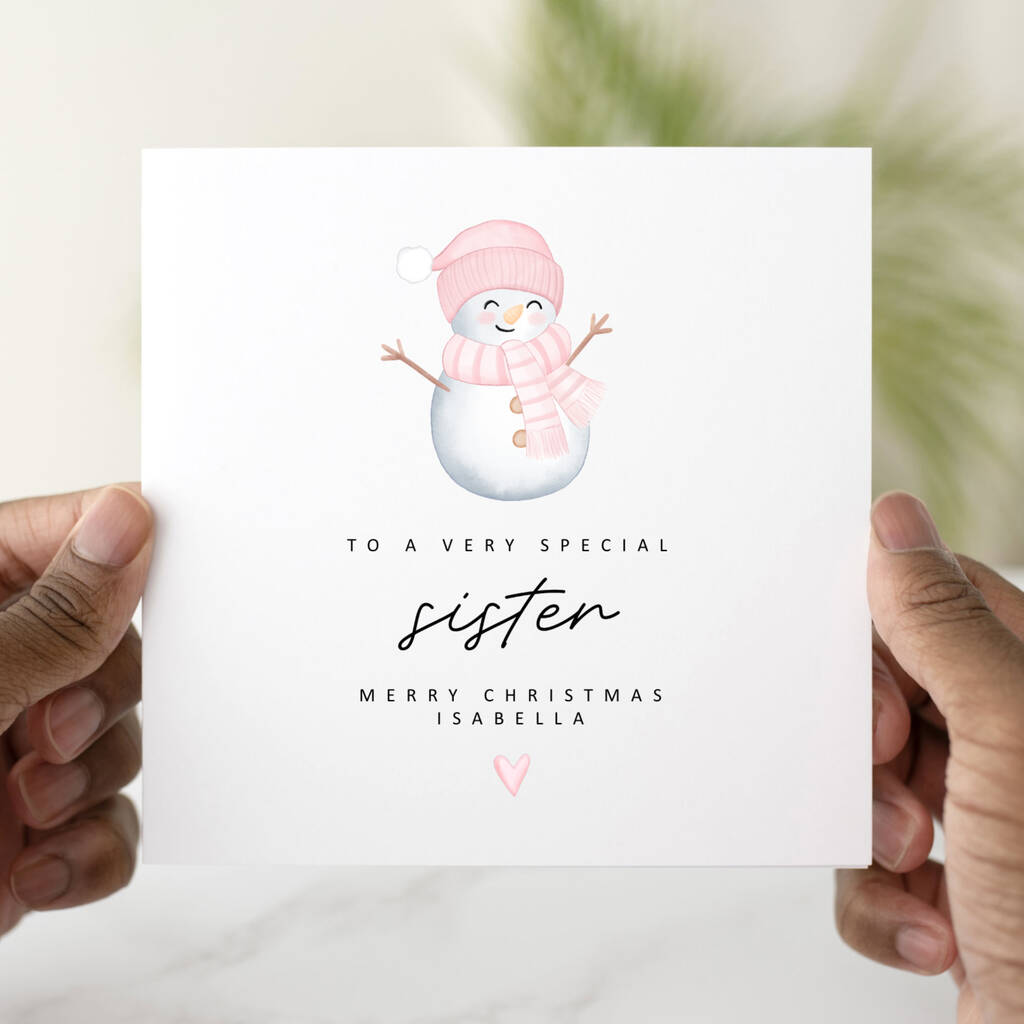 Personalised Sister Christmas Snow Man Card, 1 of 3