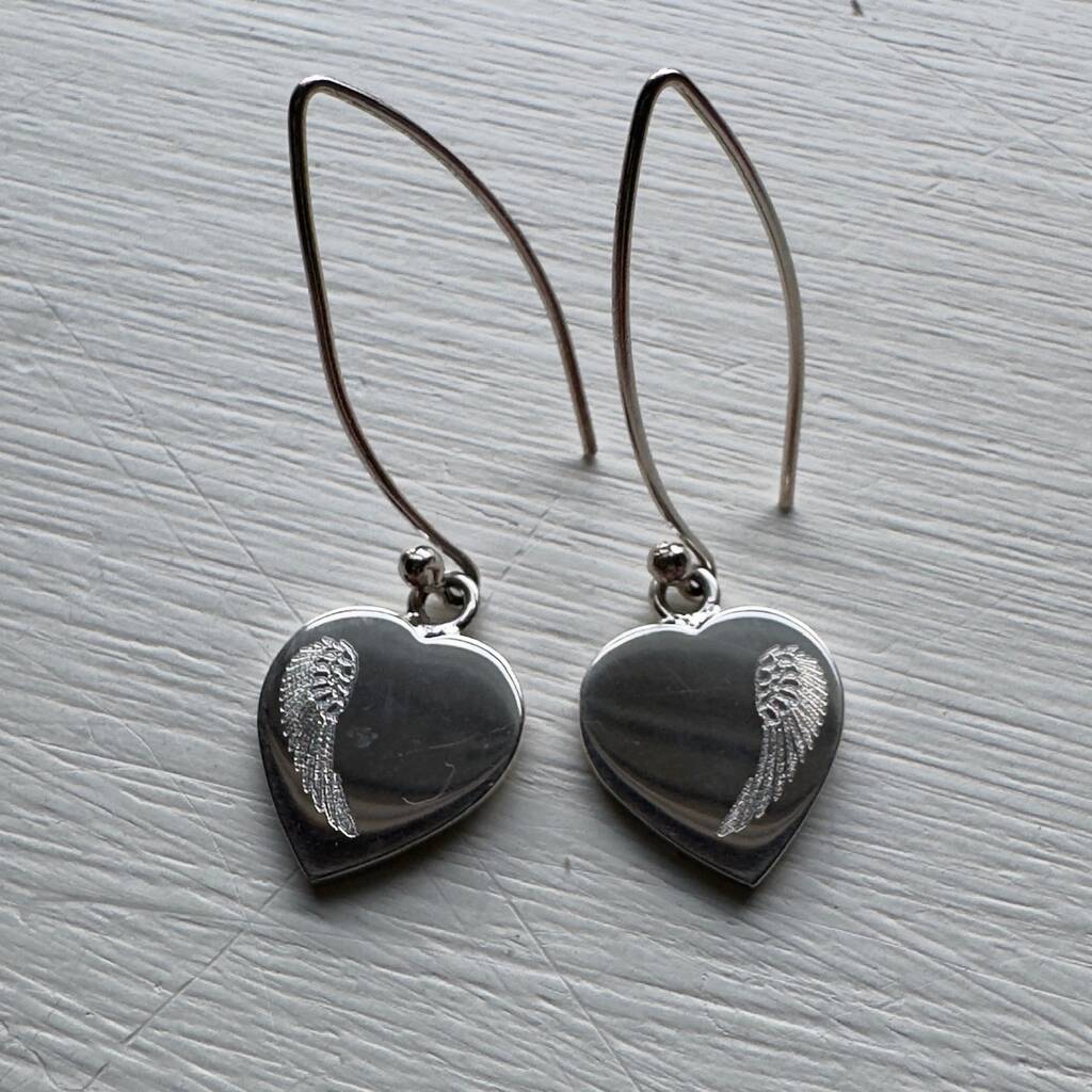 Angel Wings Heart Earrings Sterling Silver, 1 of 3