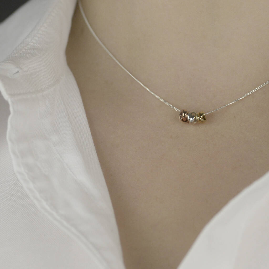 Three Knot Necklace In Silver, Rose And Gold, 1 of 6