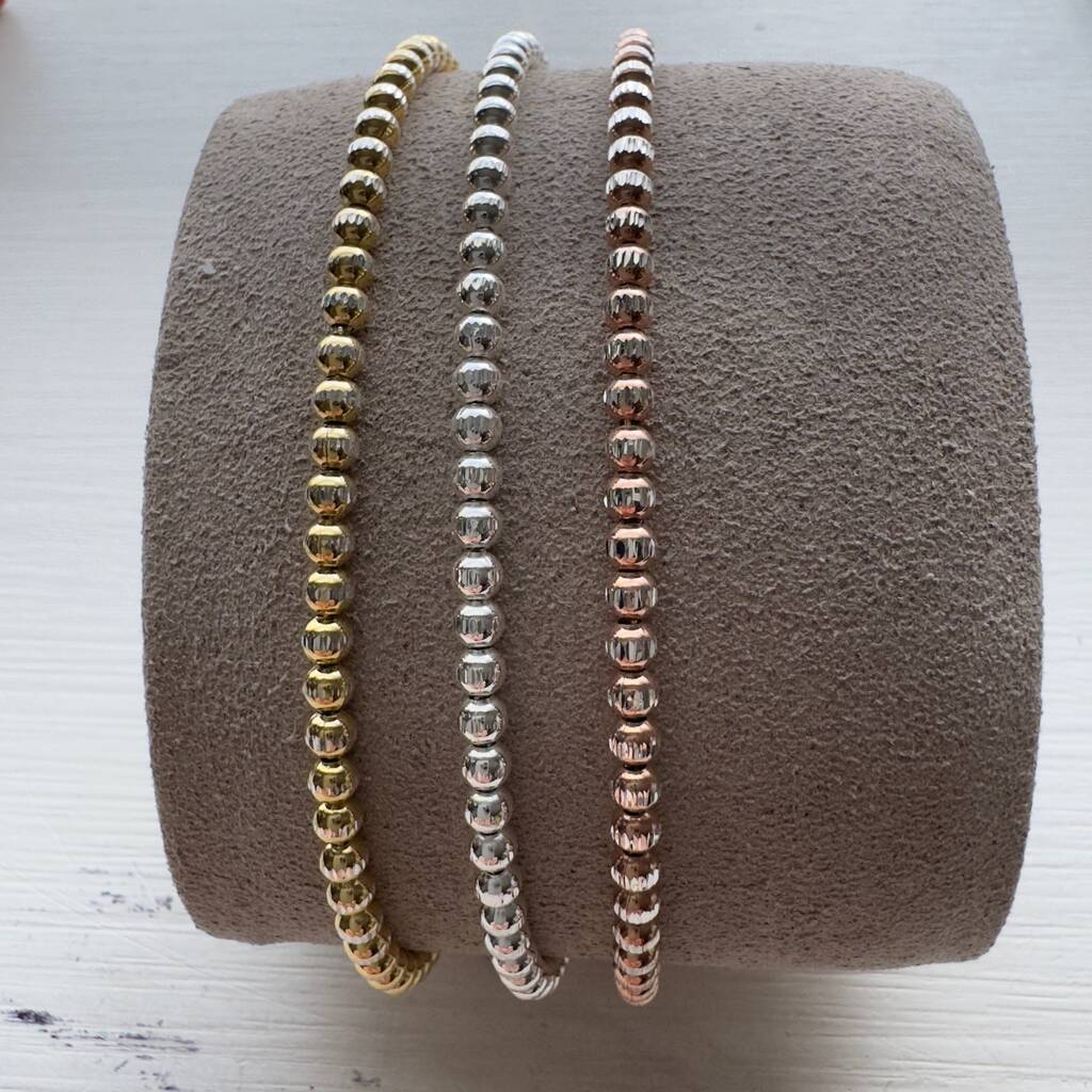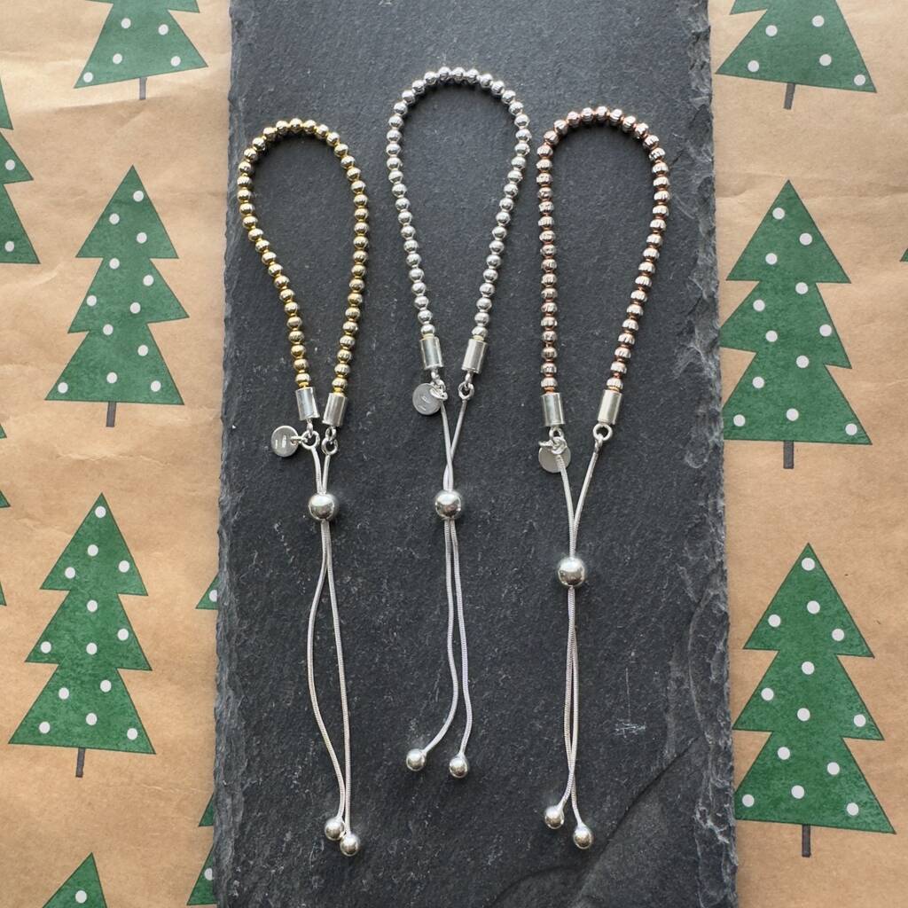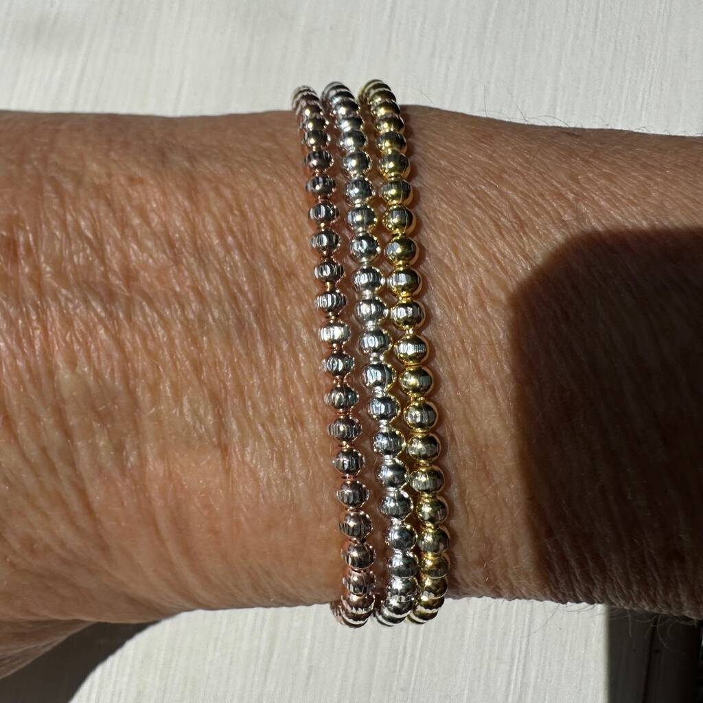 Three Sparkly Bracelets In Silver, Rose Gold And Gold Plated