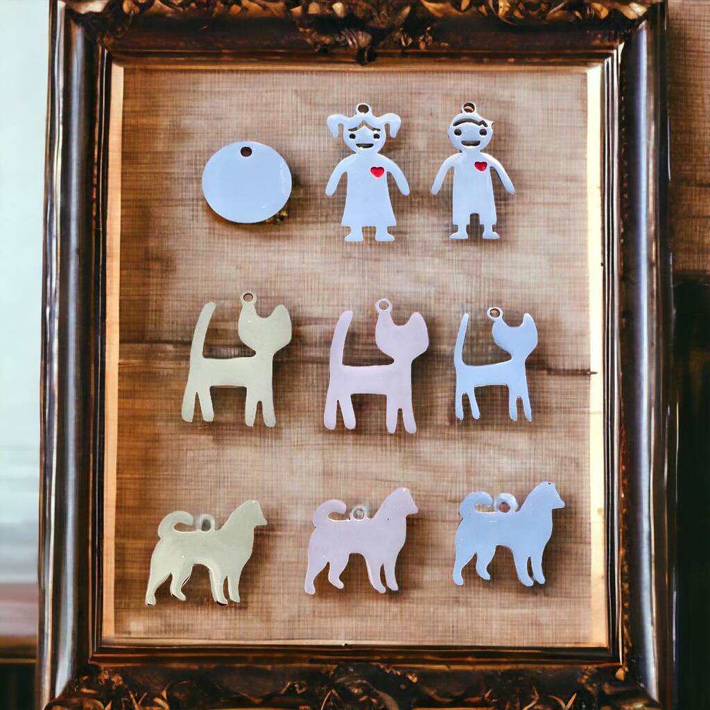 * Dimensions: Heart 26mm x 30mm x 1.5mm; Child charm 15mm x 26mm x 1.5mm