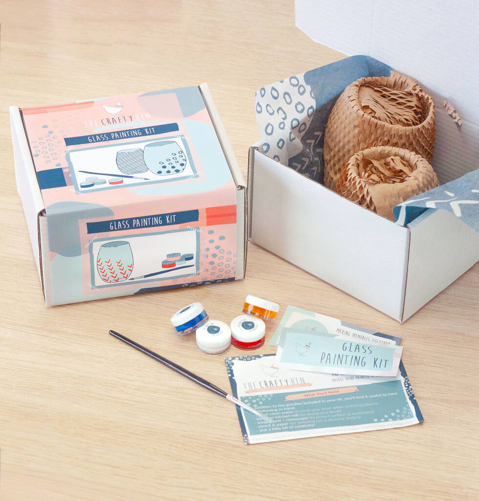 Inside this DIY glass painting kit you’ll discover a pair of glasses, four glass paints (red, yellow, blue and white), a paintbrush, as well as inspiration and painting tips to inspire your designs. All you’ll need to provide is a cup of water, old plastic tubs (like, yoghurt pots) for mixing colours, and some kitchen roll or tissue.