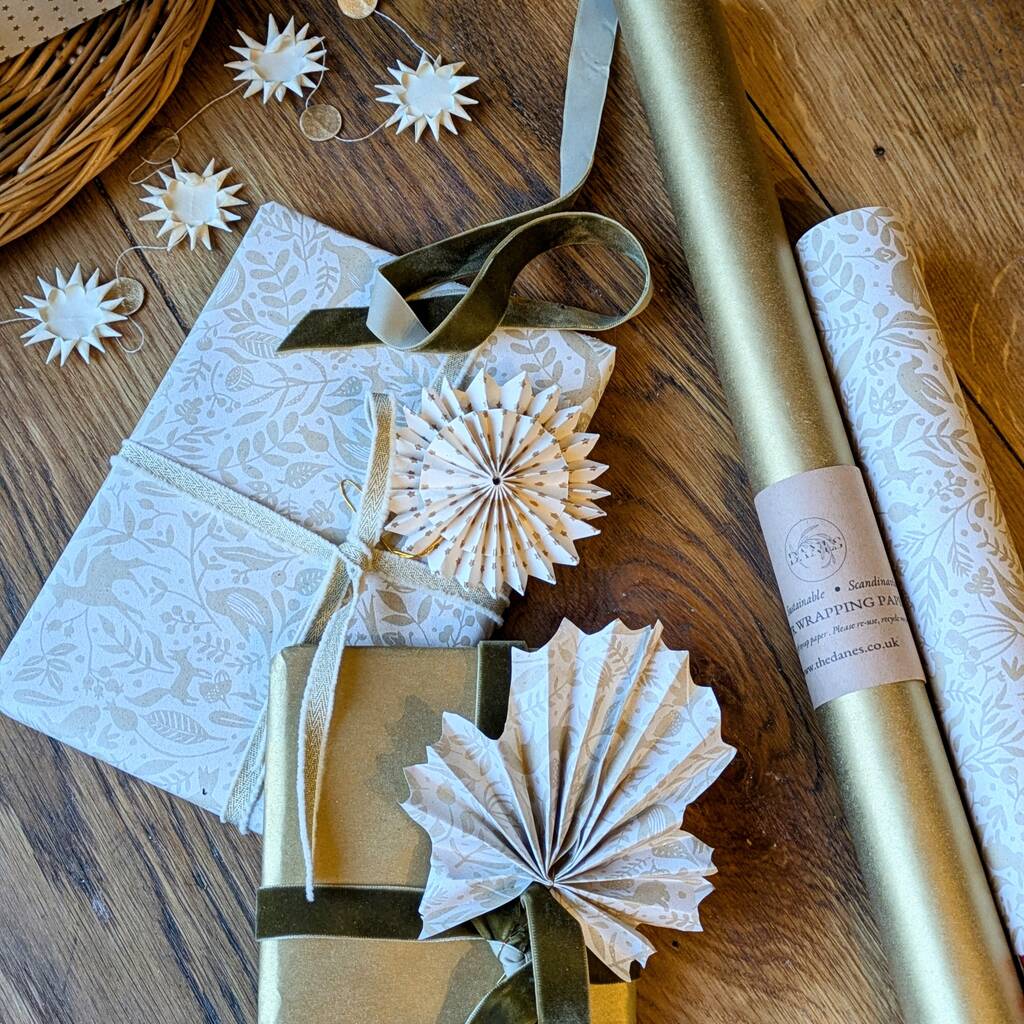 Create a gogorous look and feel to gift wrapping with this beautiful eco friendly paper made from grassfiber for winter birthdays and Christmas.