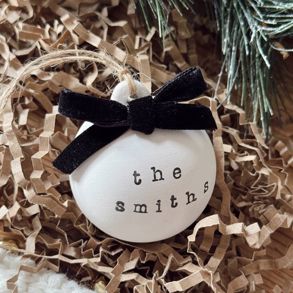 Personalised Ceramic Family Name Christmas Bauble Tree Decoration